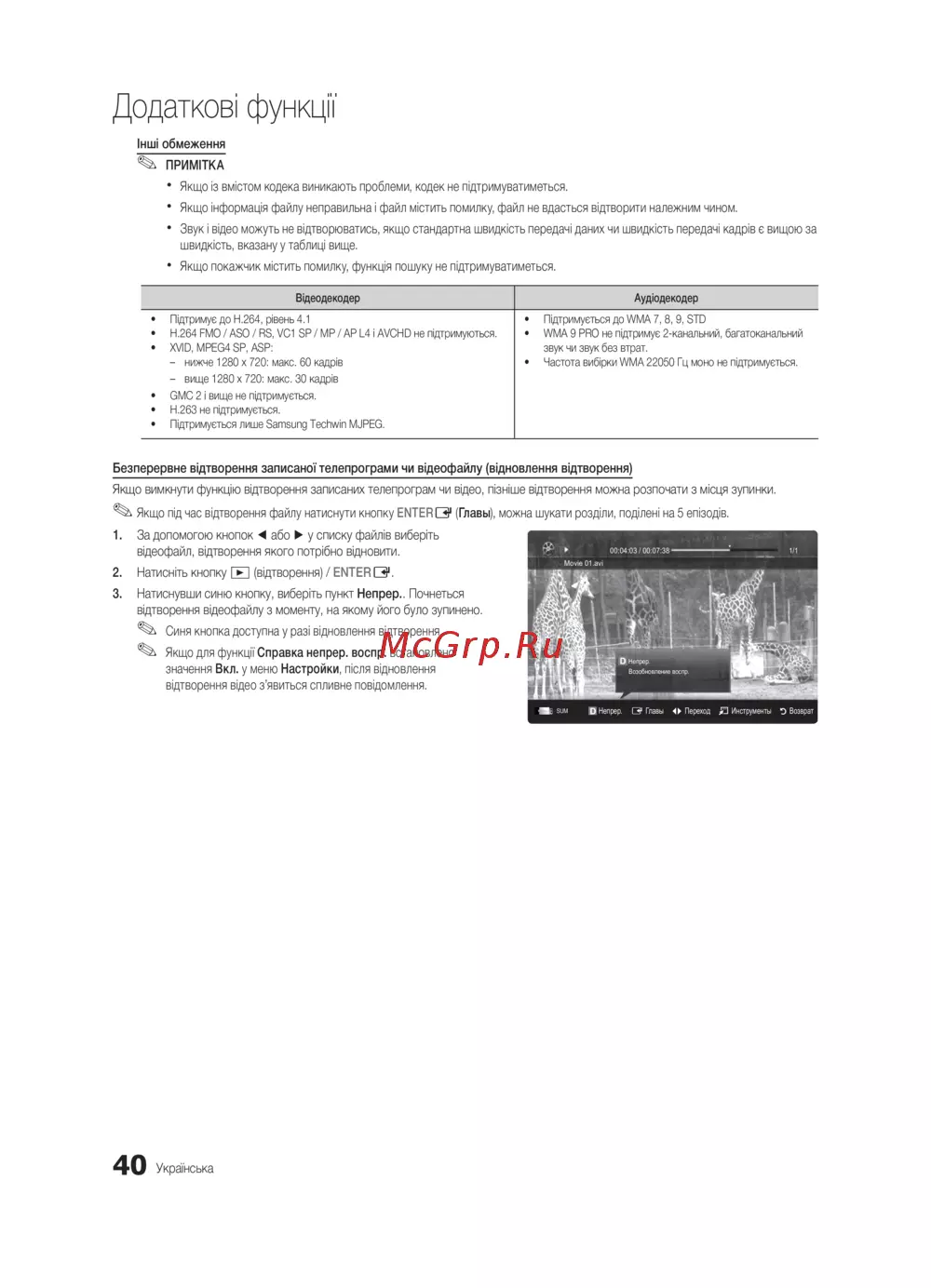 • H.264 FMO / ASO / RS, VC1 SP / MP / AP L4 і AVCHD не підтримуються.