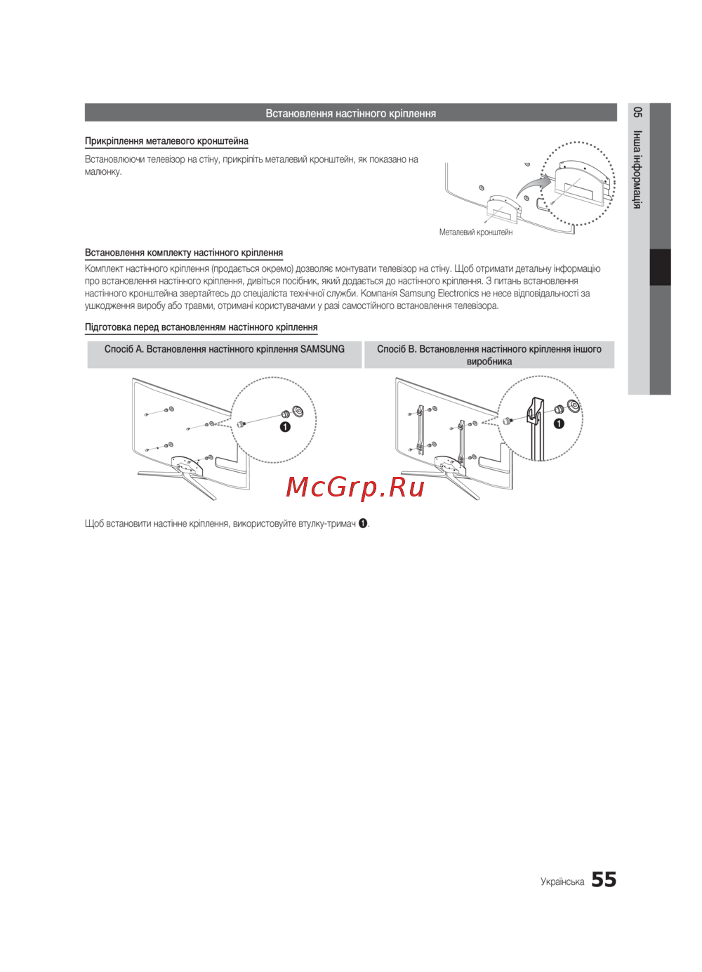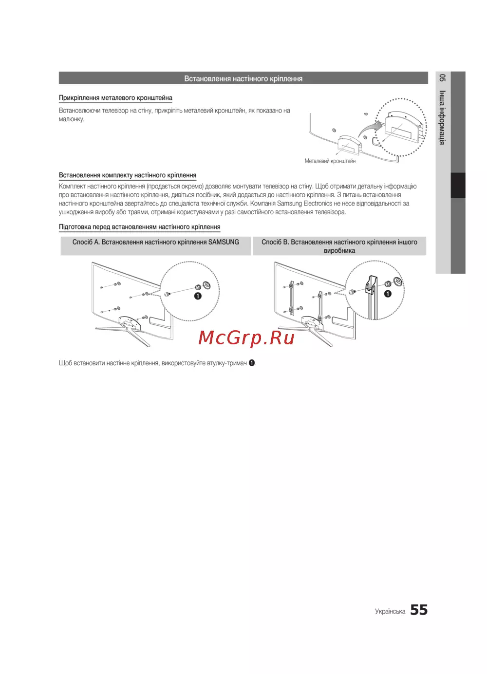 Спосіб A. Встановлення настінного кріплення SAMSUNG Спосіб B. Встановлення настінного кріплення іншого