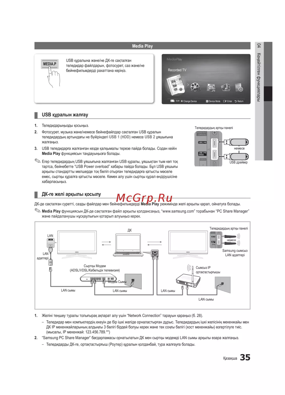 Media Play функциясын ДК-де сақталған файл арқылы қолдансаңыз, “www.samsung.com” торабынан “PC Share Manager”