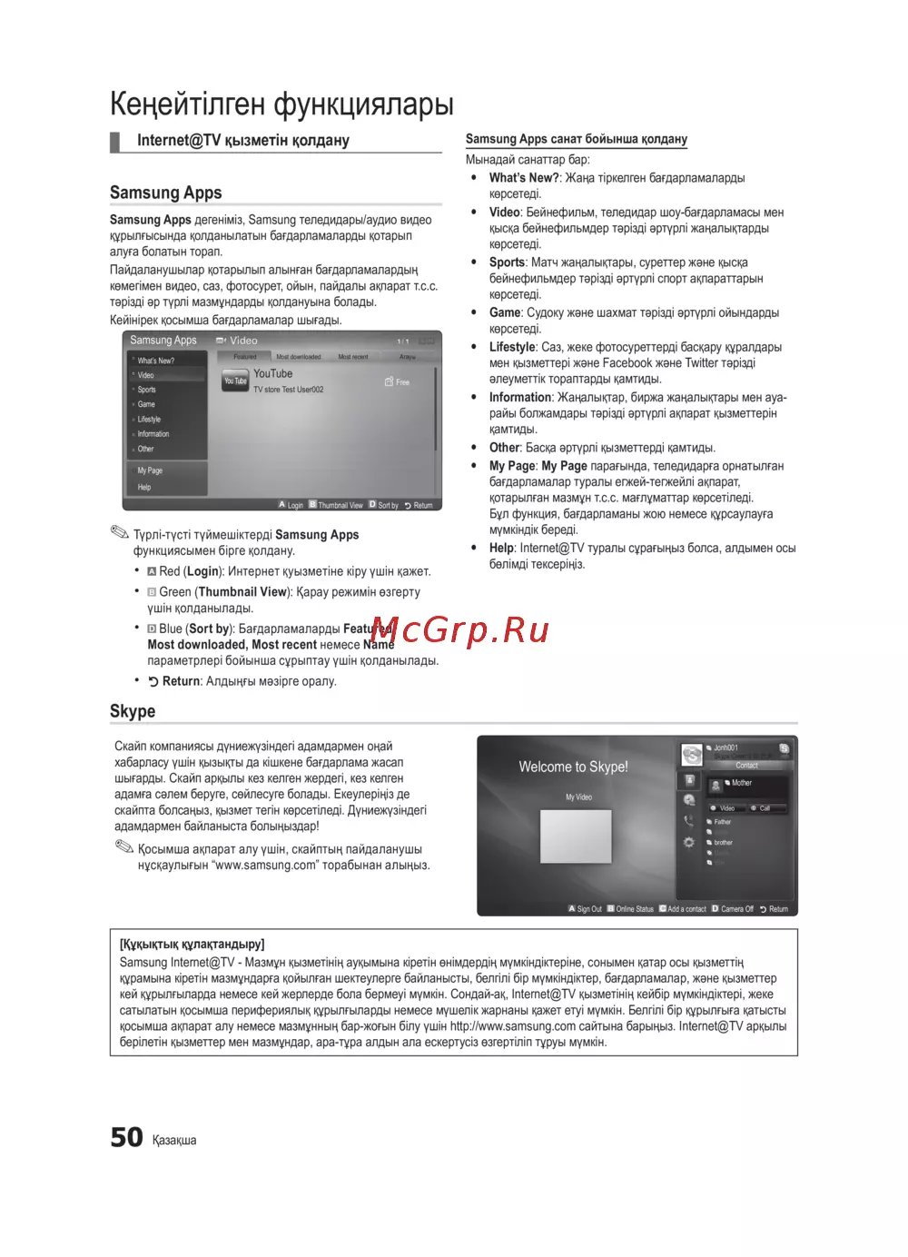 қосымша ақпарат алу немесе мазмұнның бар-жоғын білу үшін http://www.samsung.com сайтына барыңыз. Internet@TV арқылы