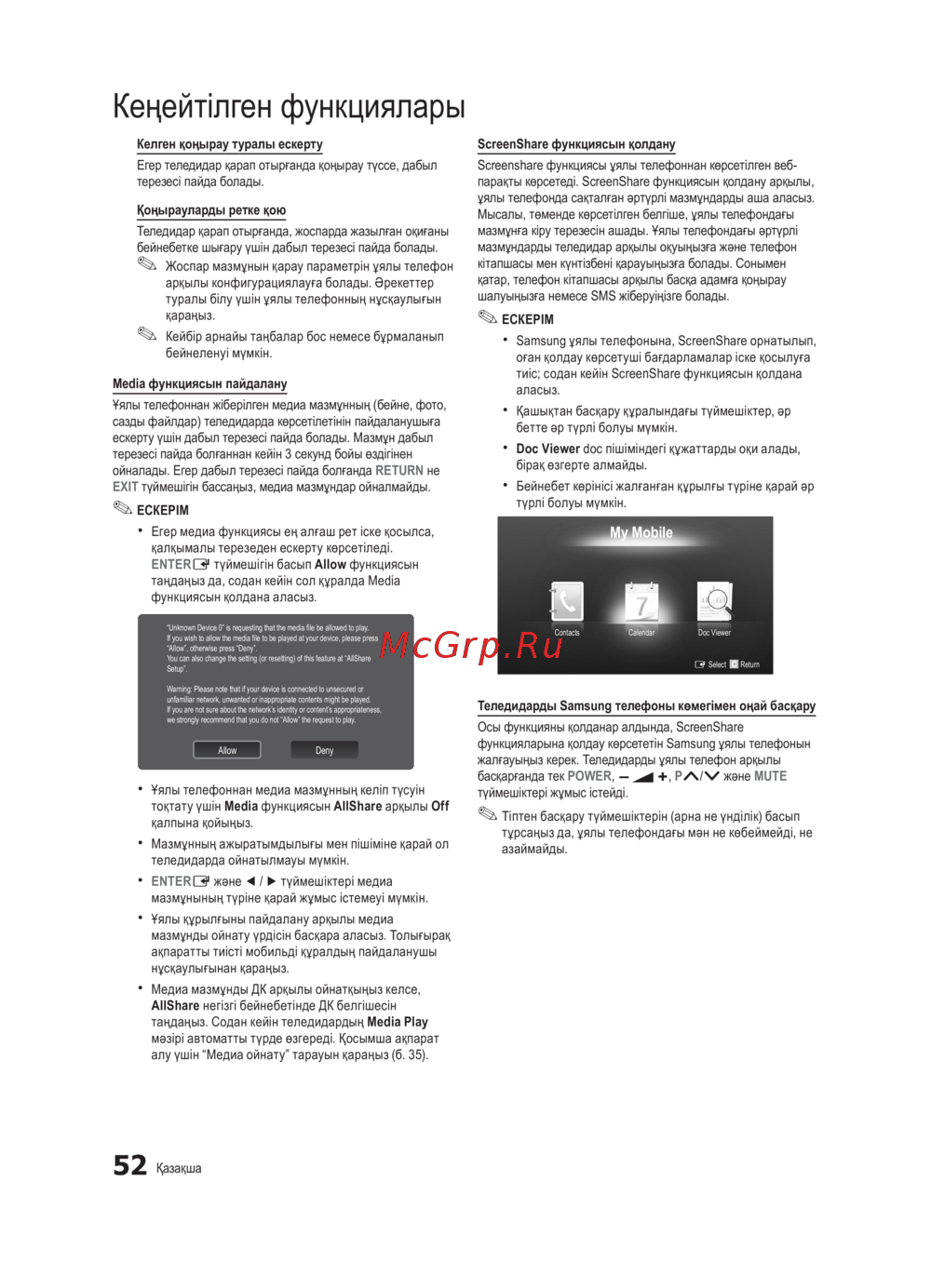 парақты көрсетеді. ScreenShare функциясын қолдану арқылы,