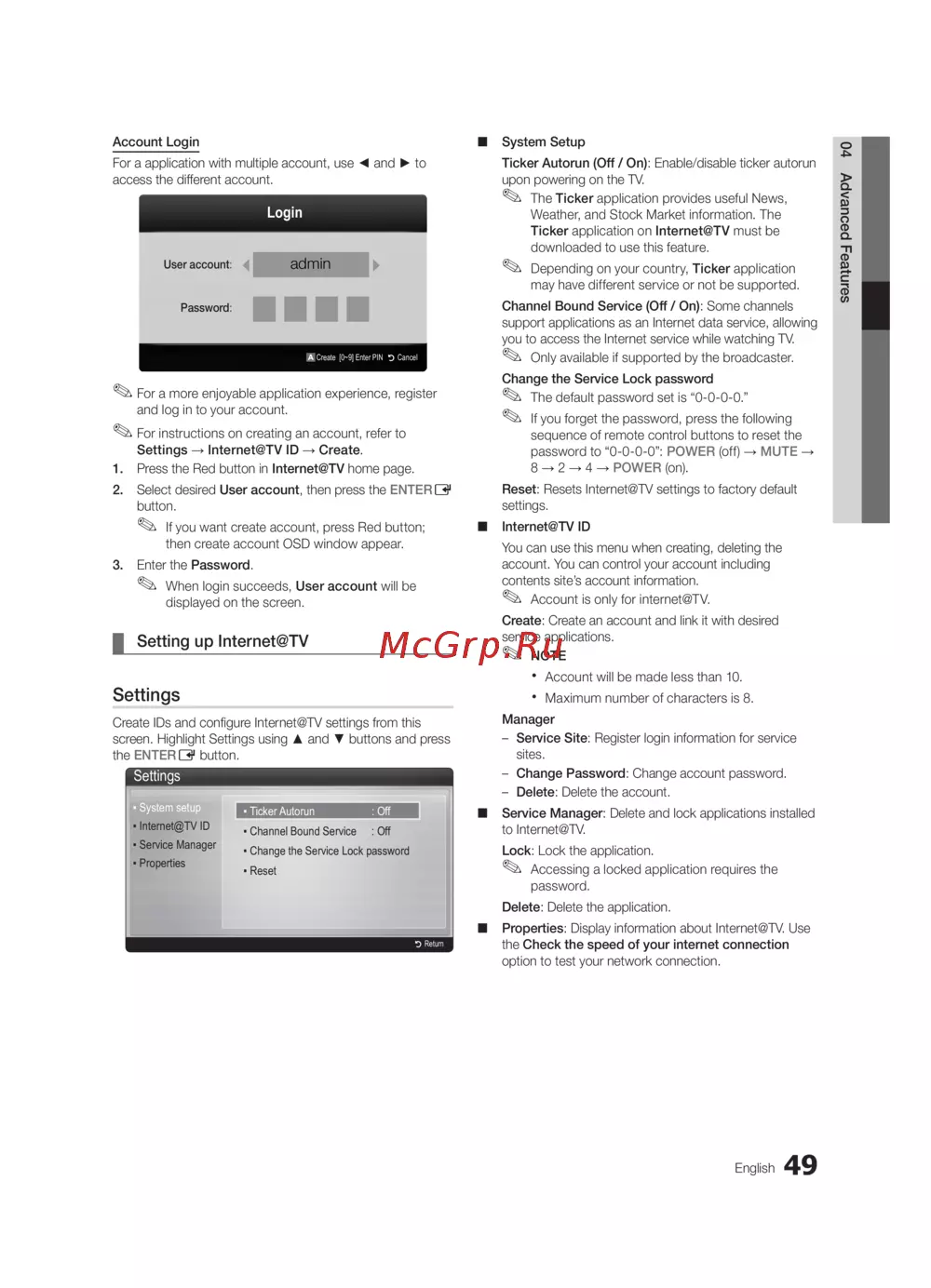 Create IDs and configure Internet@TV settings from this