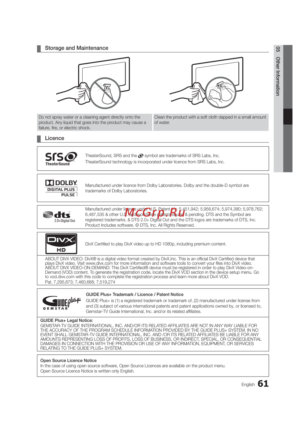 GUIDE Plus+ Trademark / Licence / Patent Notice