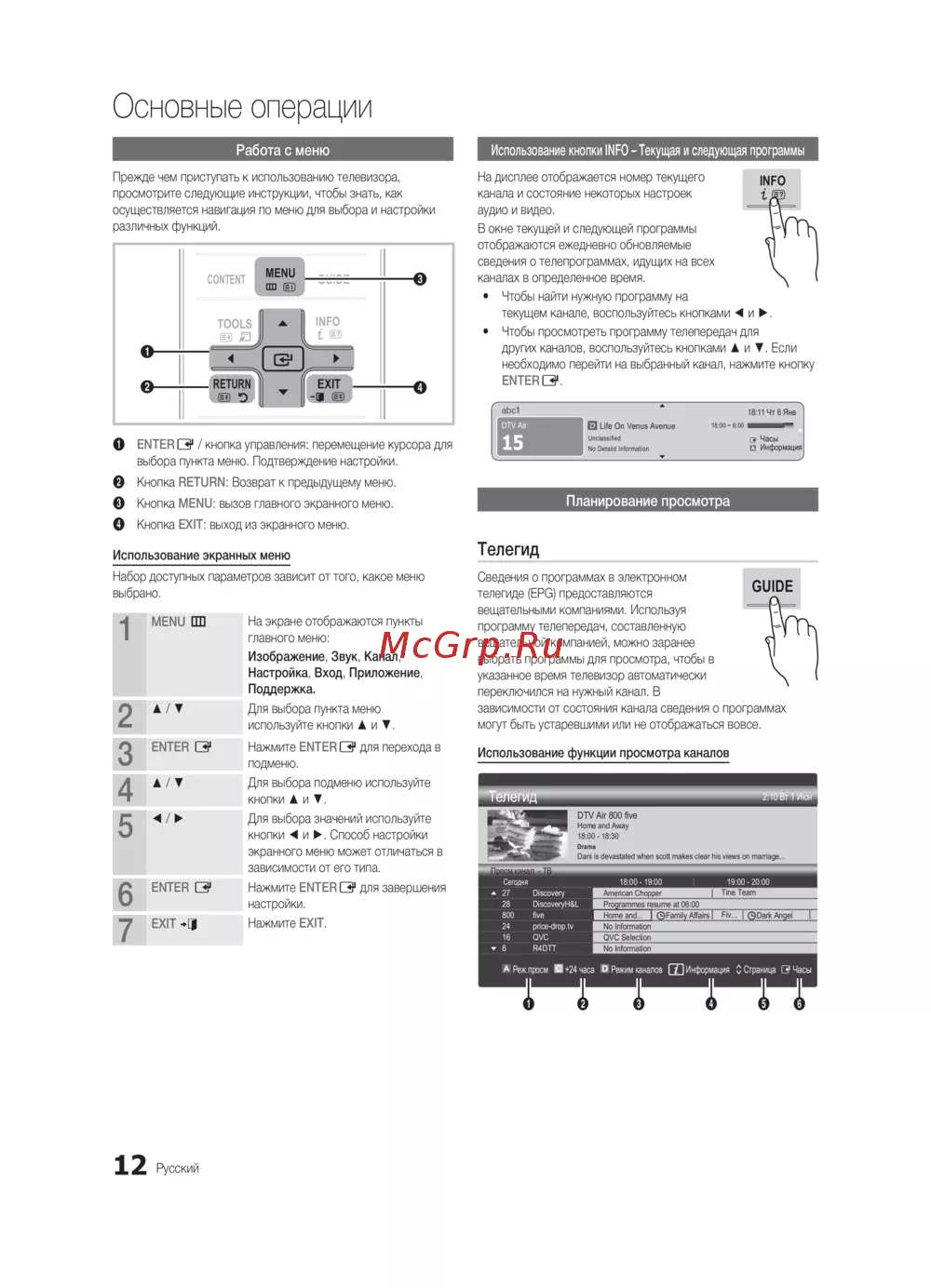 Использование кнопки INFO – Текущая и следующая программы