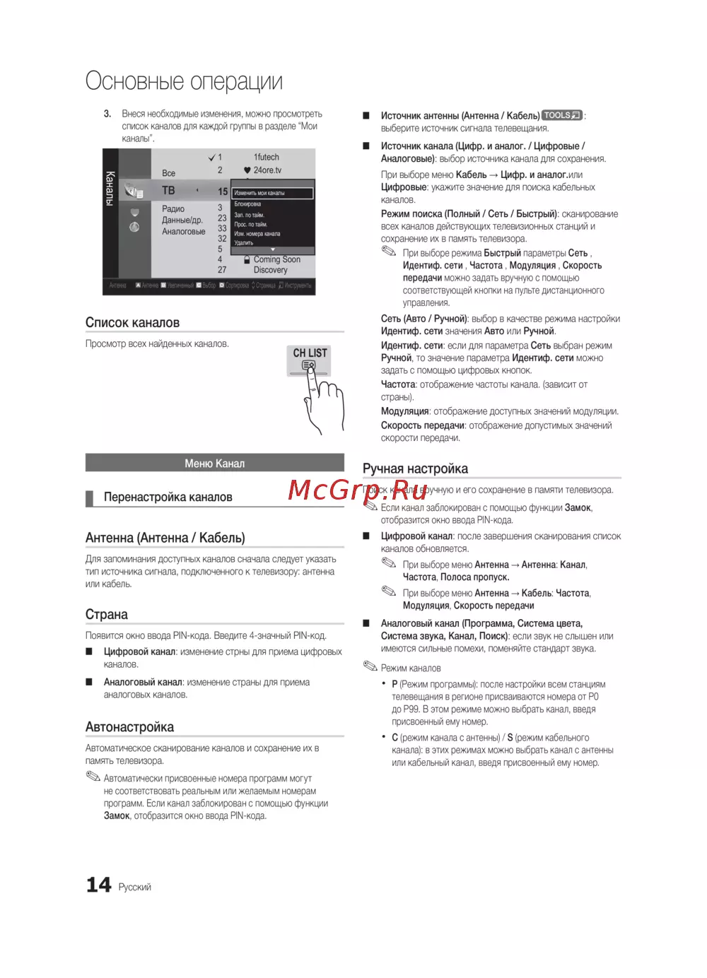 канала): в этих режимах можно выбрать канал с антенны