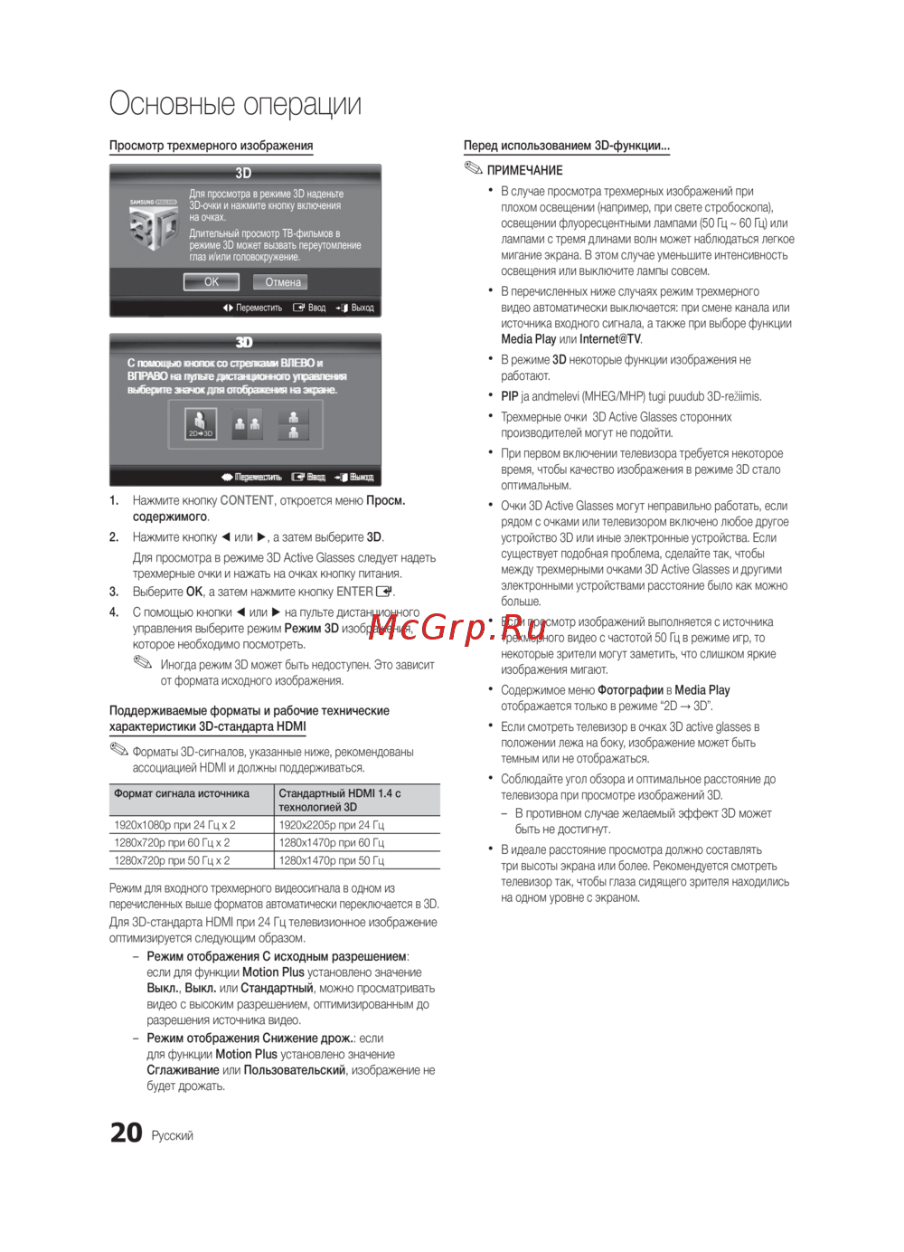 Перед использованием 3D-функции...