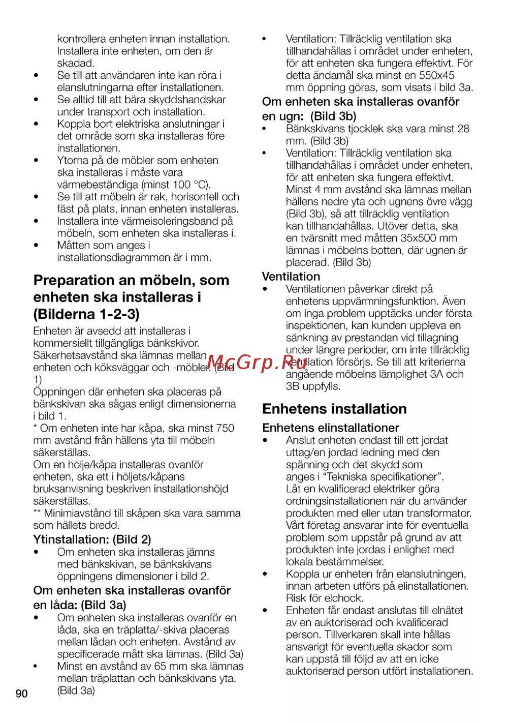 - Preparation an möbeln som enheten ska installeras i bilderna 1 2 3 p.90