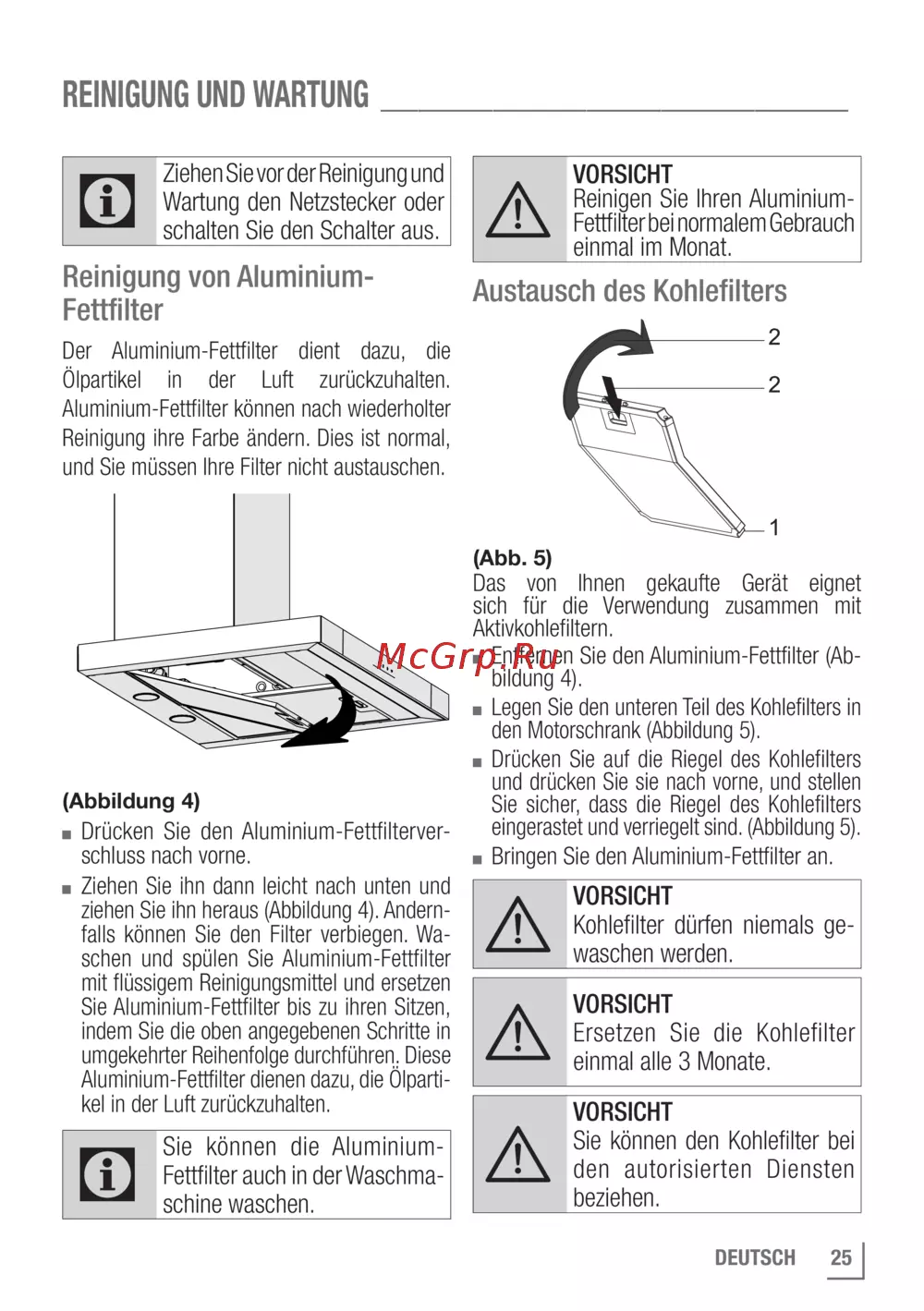 Fettfilter bei normalem Gebrauch
