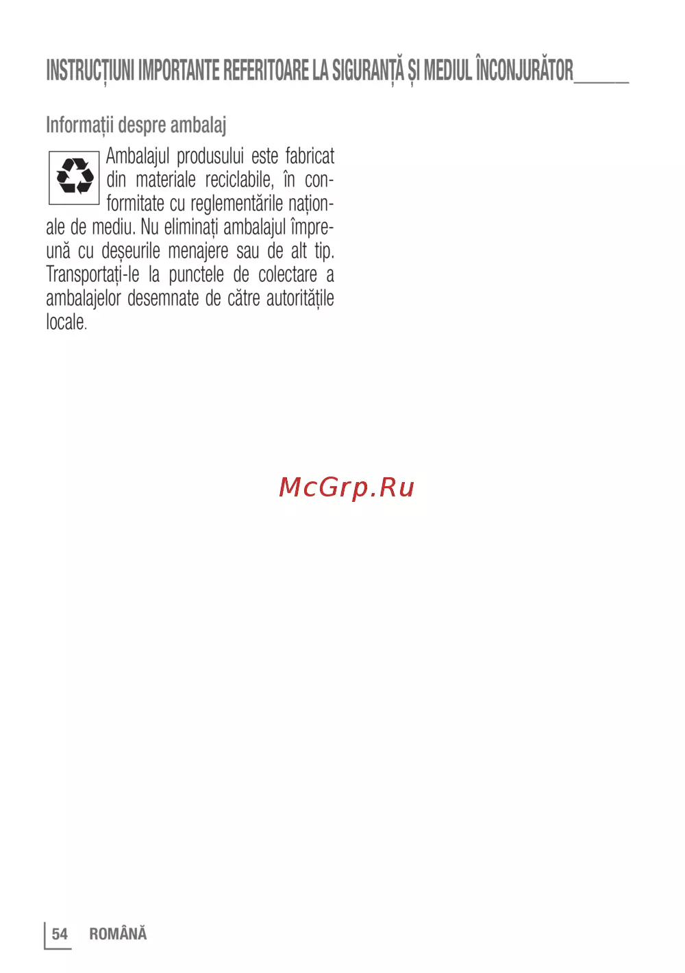 Grundig GDKP5460BC [54/92] Instrucțiuni importante referitoare la siguranță și mediul înconjurăto