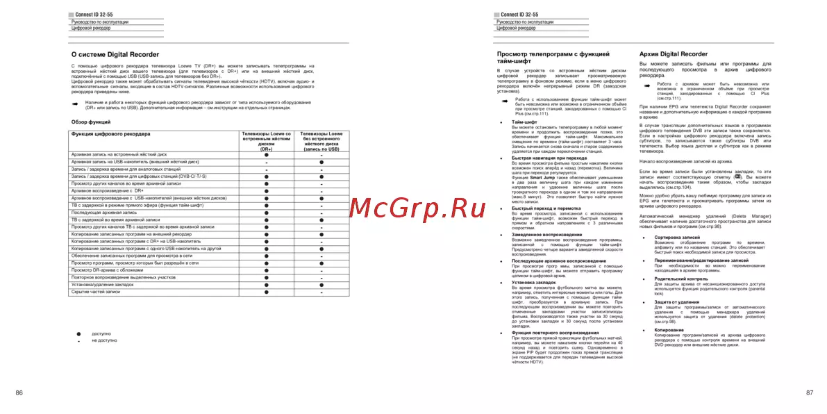 Полное руководство по использованию цифрового рекордера для записи телепрограмм, архивного воспроизведения, тайм-шифта и управления HDTV. Поддержка EPG, субтитров и CI Plus.