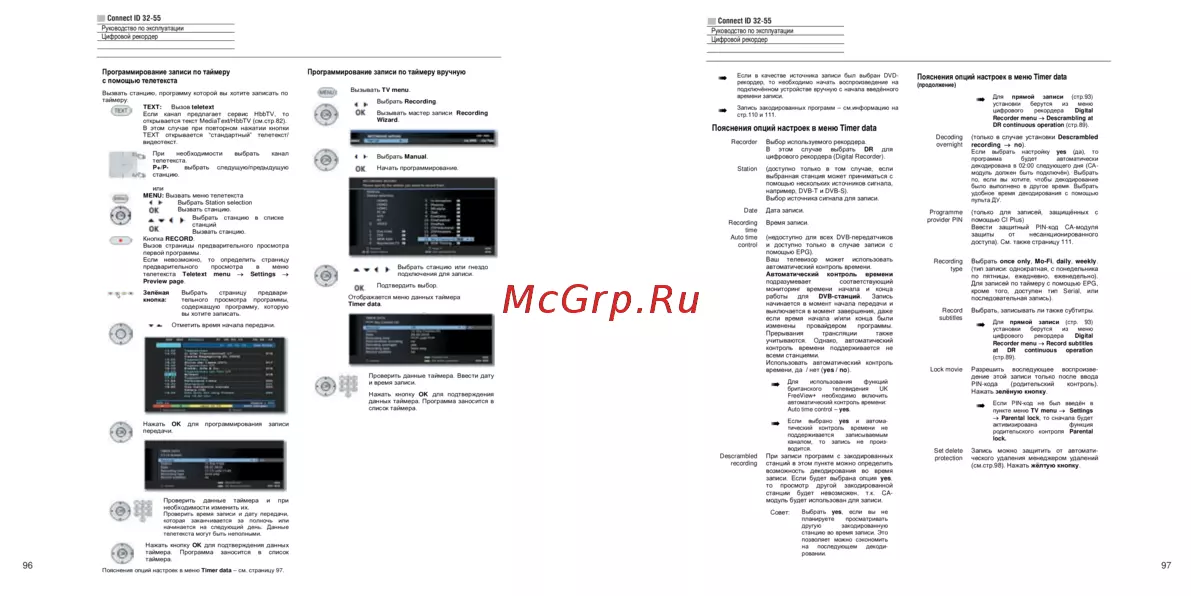 Пояснения опций настроек в меню Timer data – см. страницу 97.
