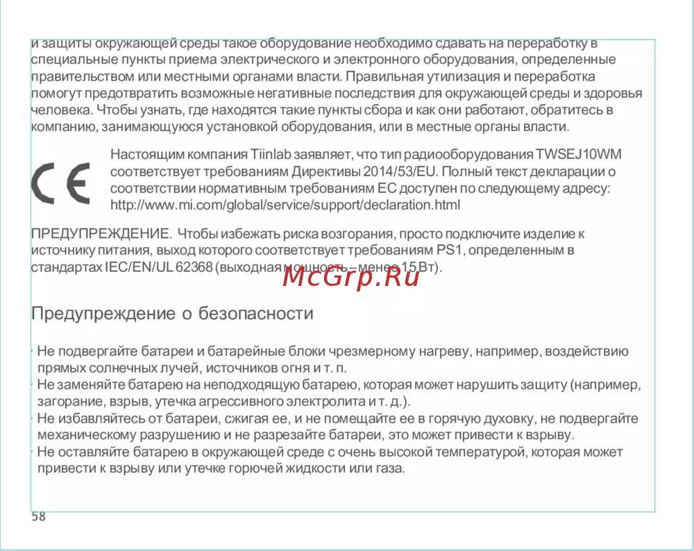 Xiaomi Earphones 2 Pro (TWSEJ10WM) [10/14] Предупреждение о безопасности