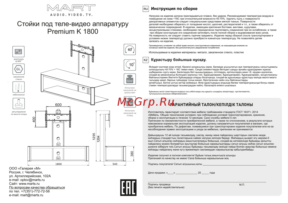 Mart Premium K 1800 (1241752) Инструкция по эксплуатации онлайн