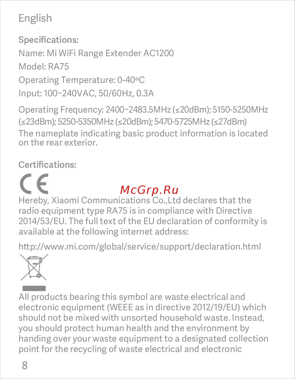 Xiaomi Mi WiFi Range Extender AC1200 (DVB4270GL) — общие характеристики расширителя диапазона WiFi AC1200 [10/77]