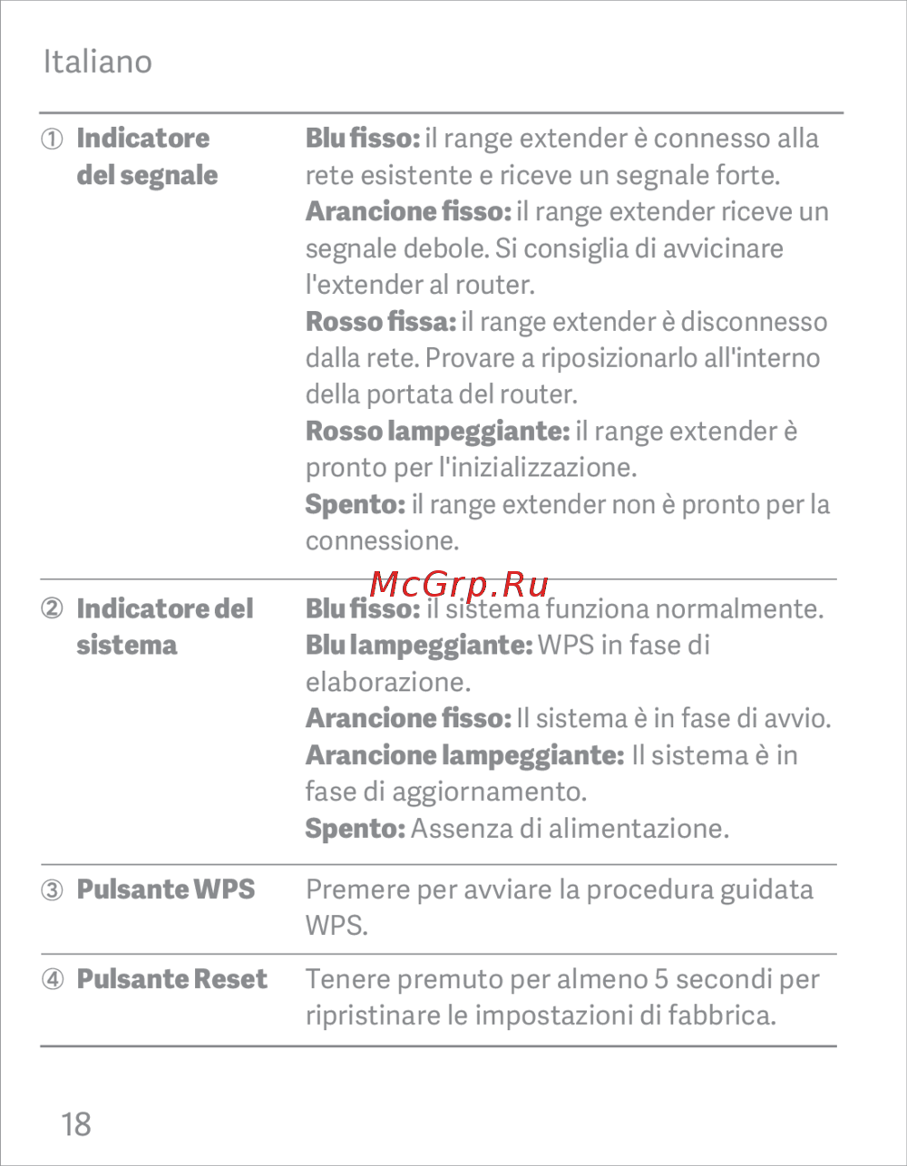 Pulsante Reset Tenere premuto per almeno 5 secondi per