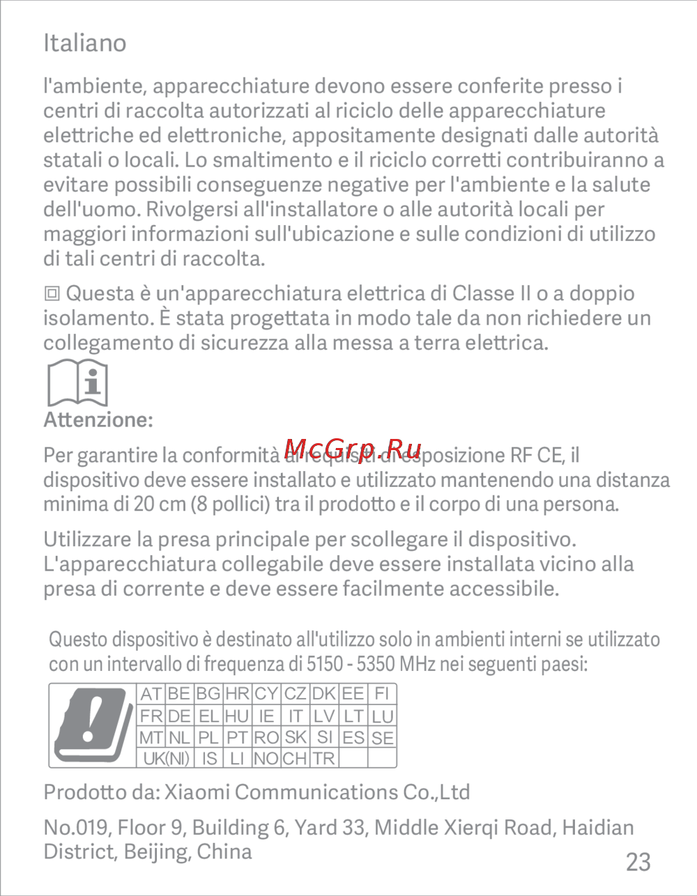 Con la presente, Xiaomi Communications Co.,Ltd dichiara che
