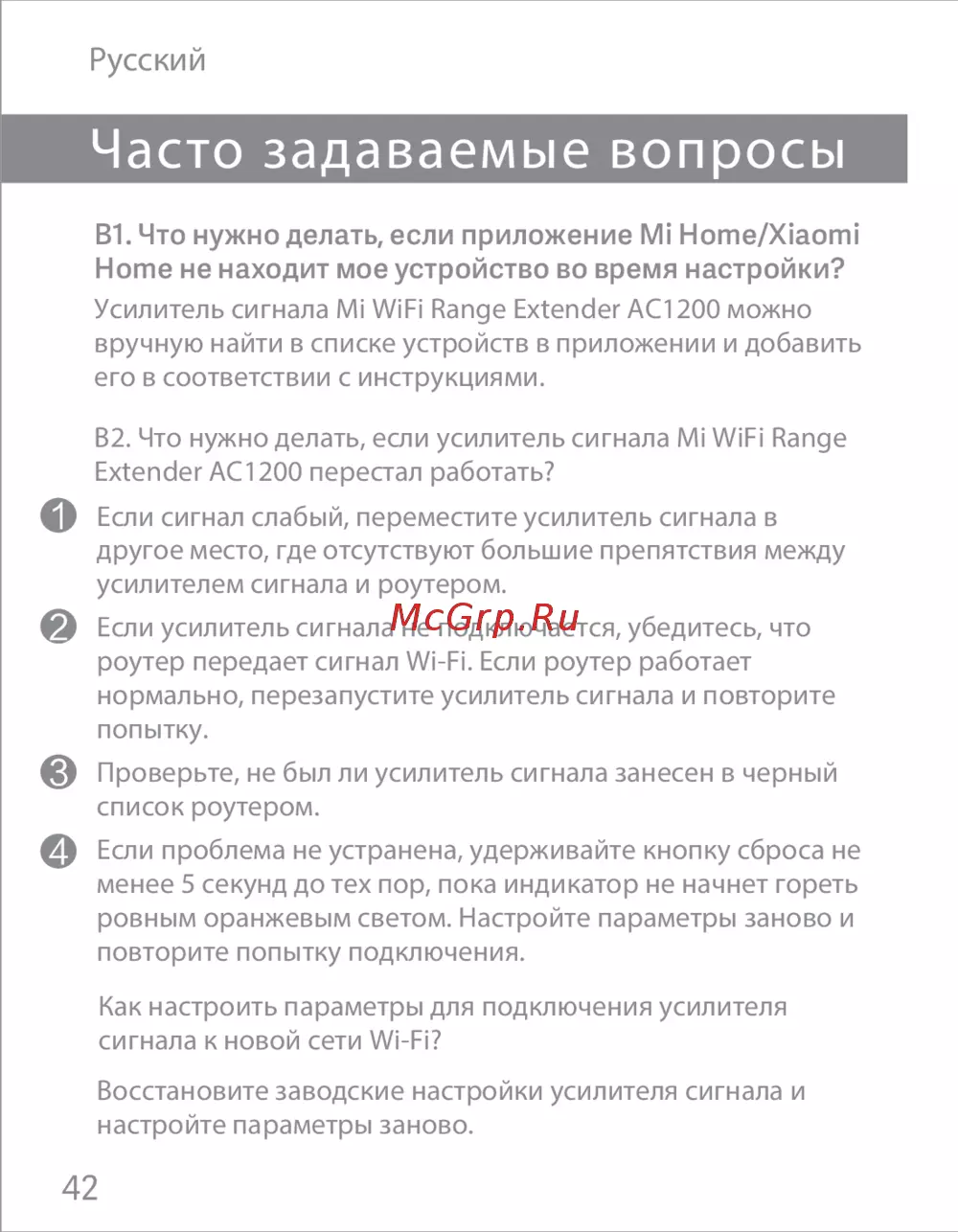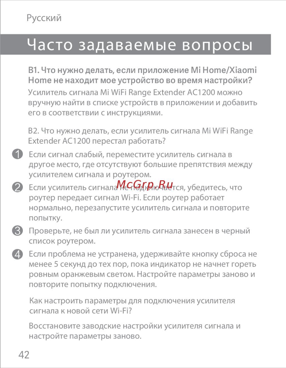 В2. Что нужно делать, если усилитель сигнала Mi WiFi Range