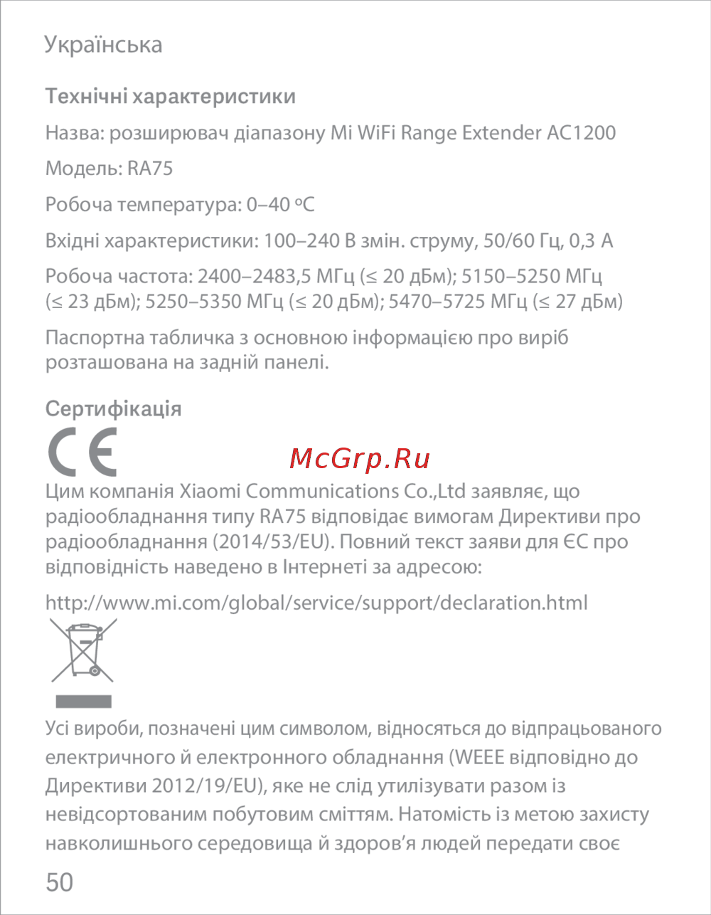 ![Xiaomi Mi WiFi Range Extender AC1200 (DVB4270GL) [52/77] Українська](/views2/1851446/page52/bg34.png)