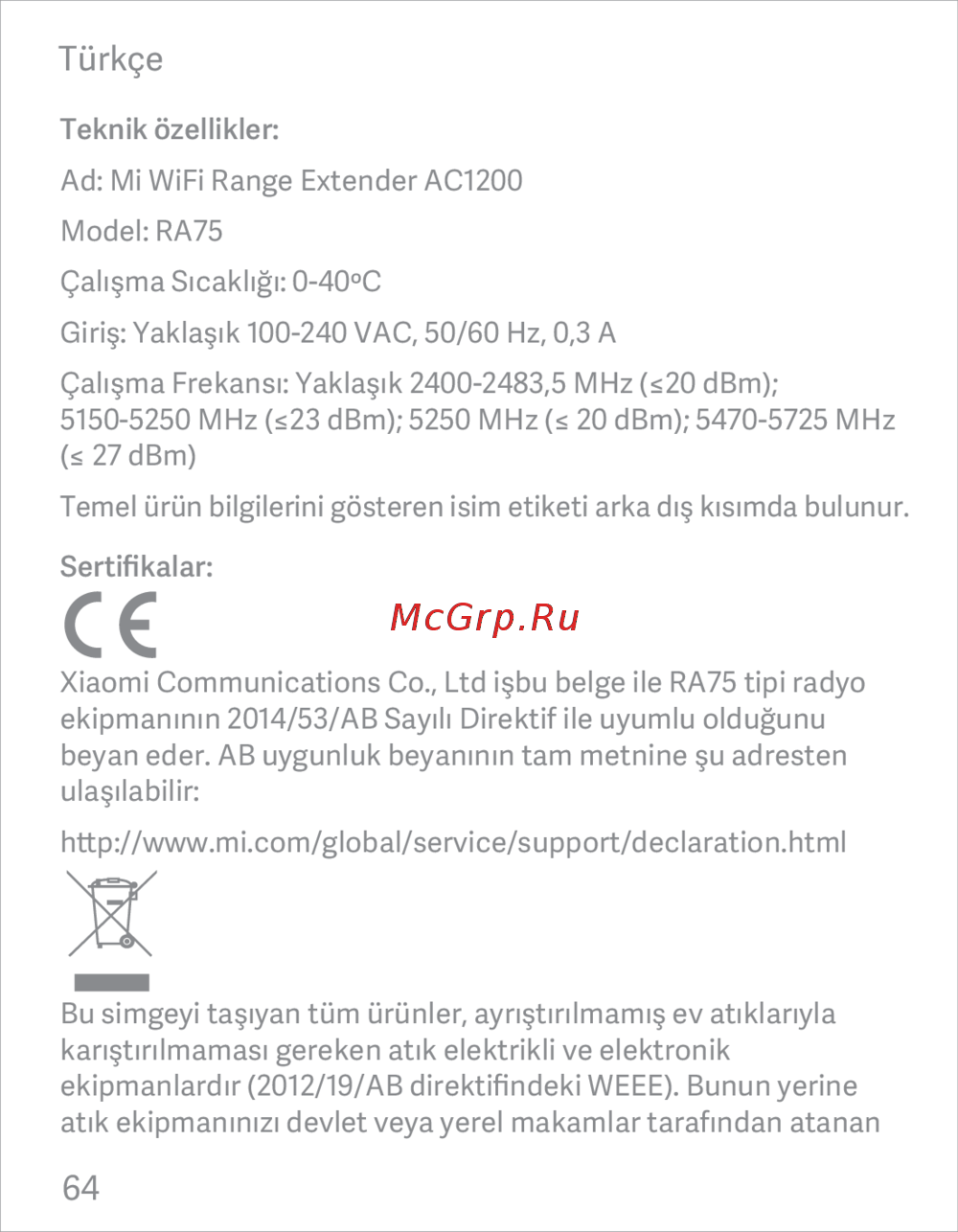 ![Xiaomi Mi WiFi Range Extender AC1200 (DVB4270GL) [66/77] Türkçe](/views2/1851446/page66/bg42.png)