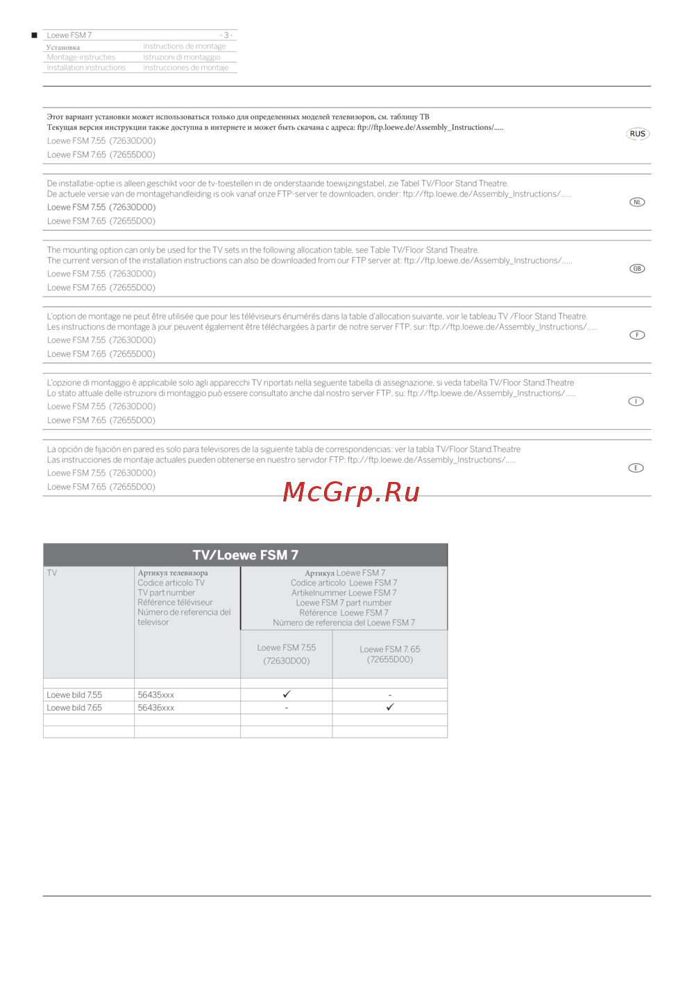 Текущая версия инструкции также доступна в интернете и может быть скачана с адреса: ftp://ftp.loewe.de/Assembly_Instructions/.....