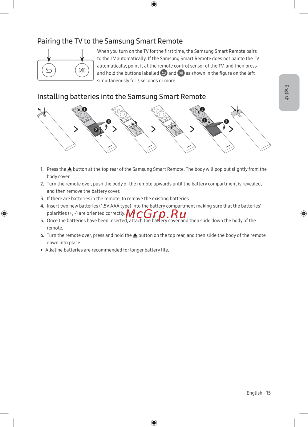 - Установка батарей в интеллектуальный пульт ду samsung p.15