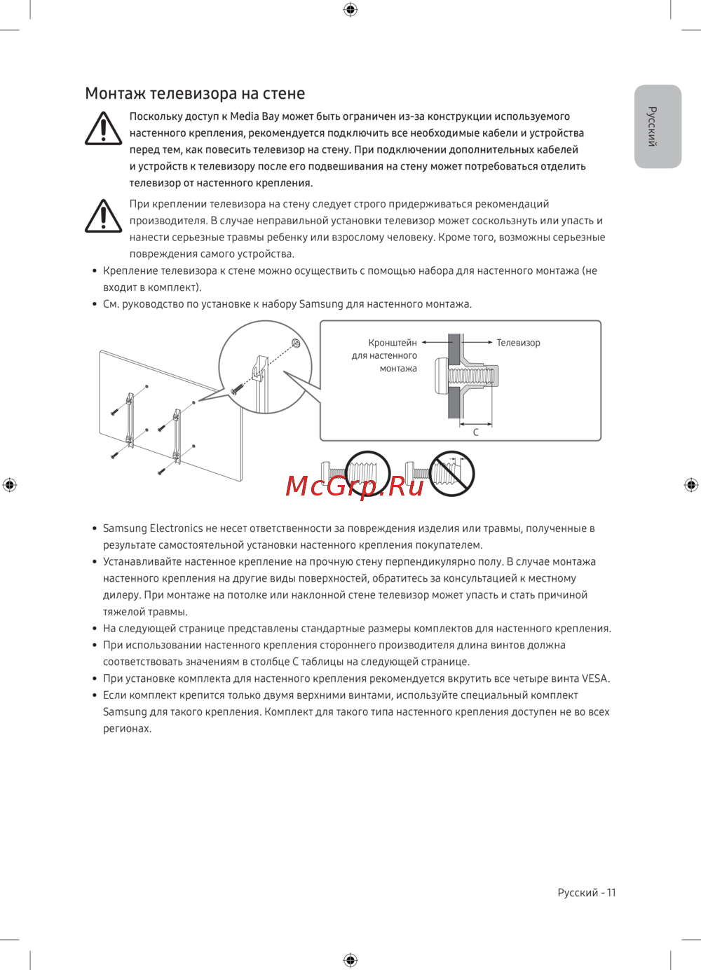 Samsung для такого крепления. Комплект для такого типа настенного крепления доступен не во всех
