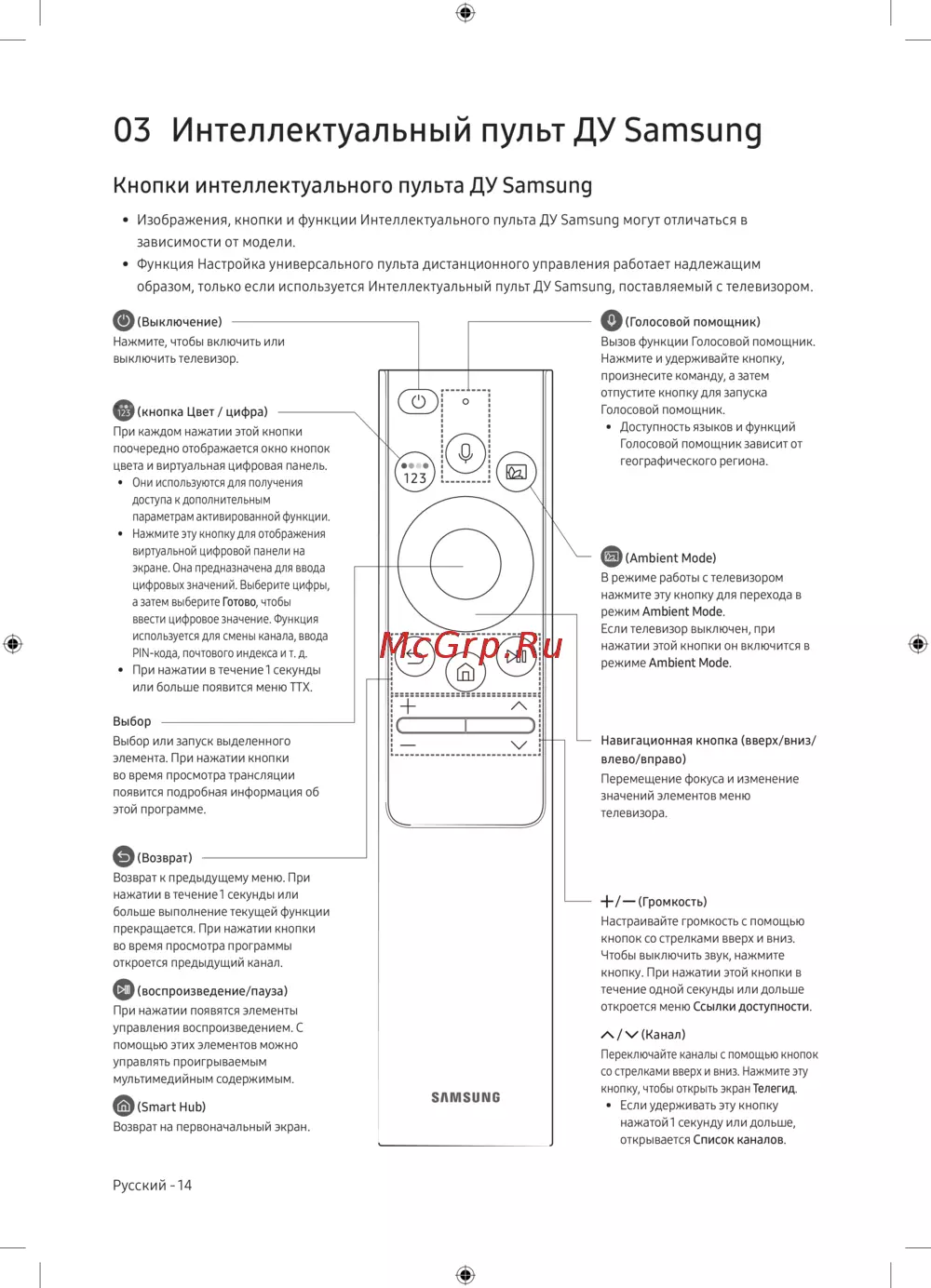 • Изображения, кнопки и функции Интеллектуального пульта ДУ Samsung могут отличаться в