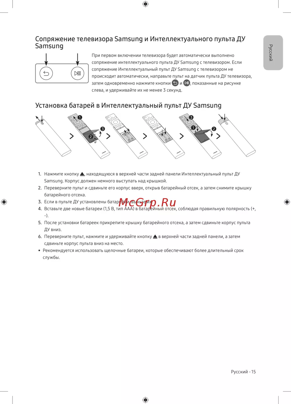 - Установка батарей в интеллектуальный пульт ду samsung p.15