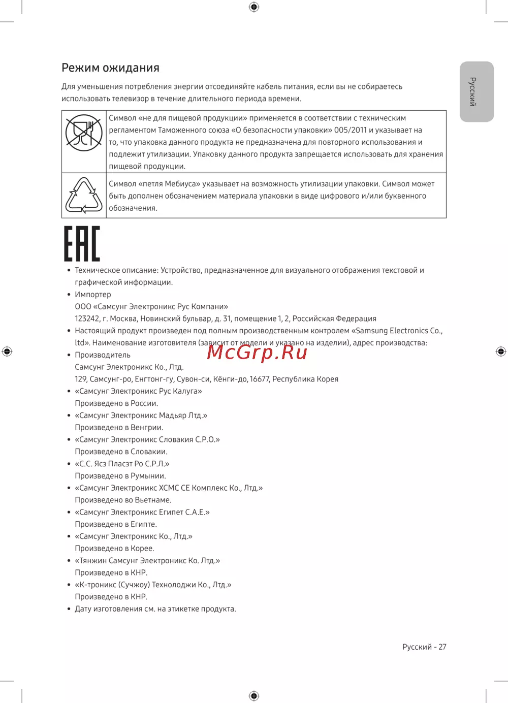 - Пояснения к символам на вашем изделии samsung см в таблице ниже p.3