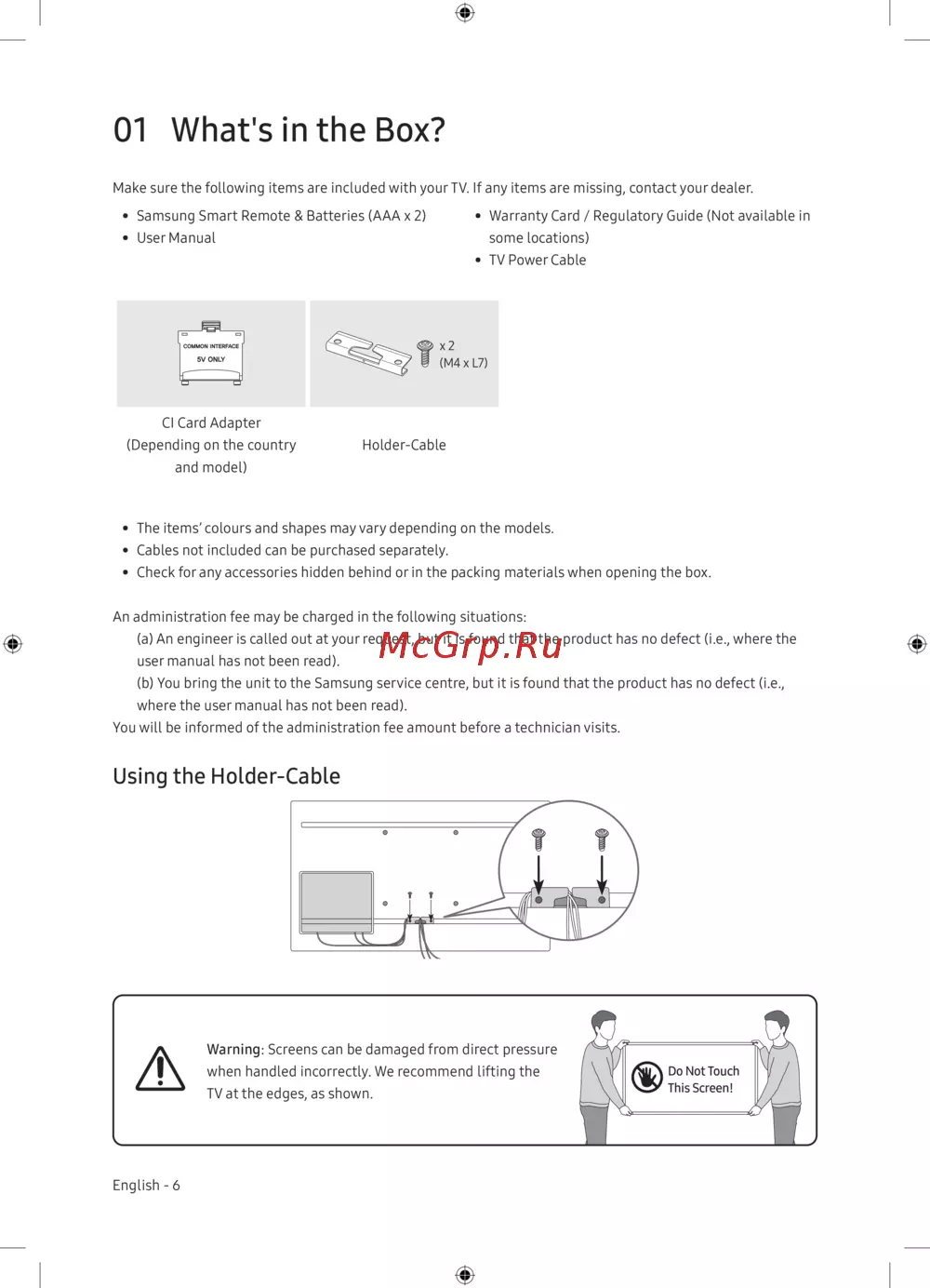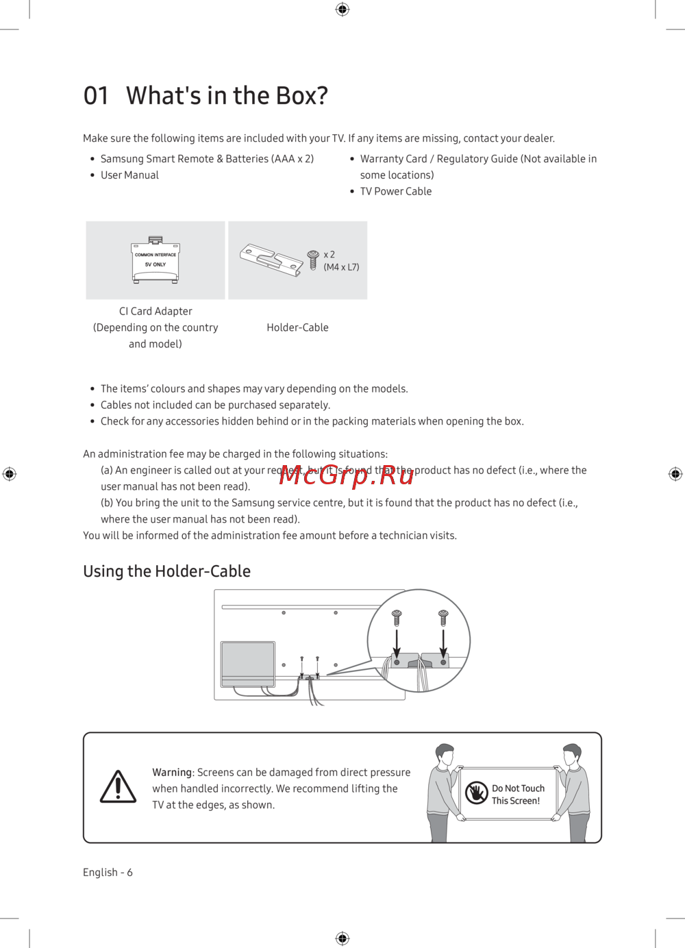 - Использование держателя для кабеля p.6