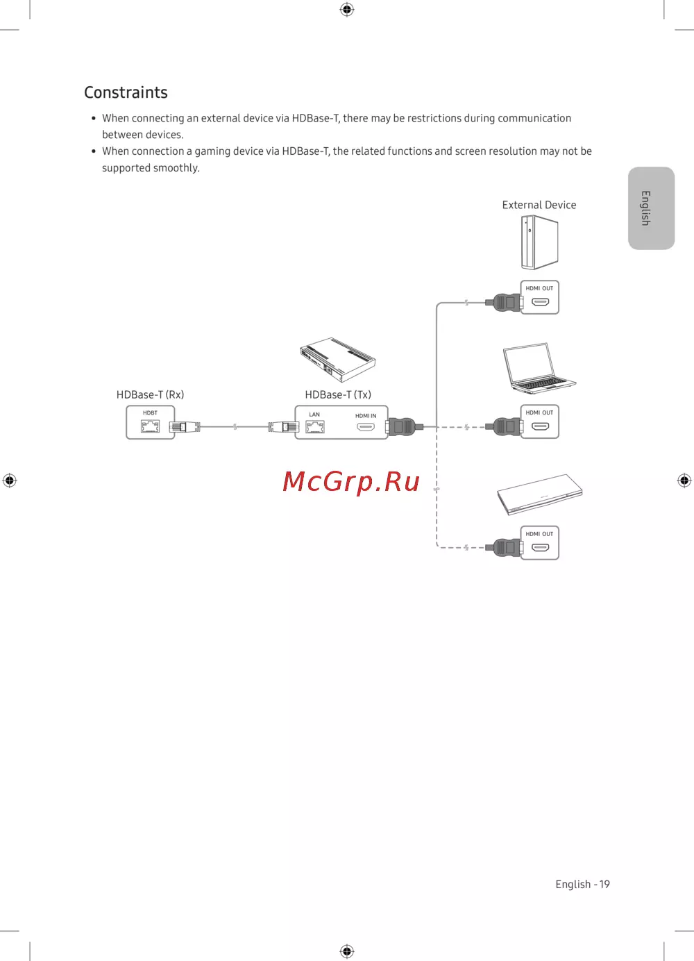 • When connecting an external device via HDBase-T, there may be restrictions during communication