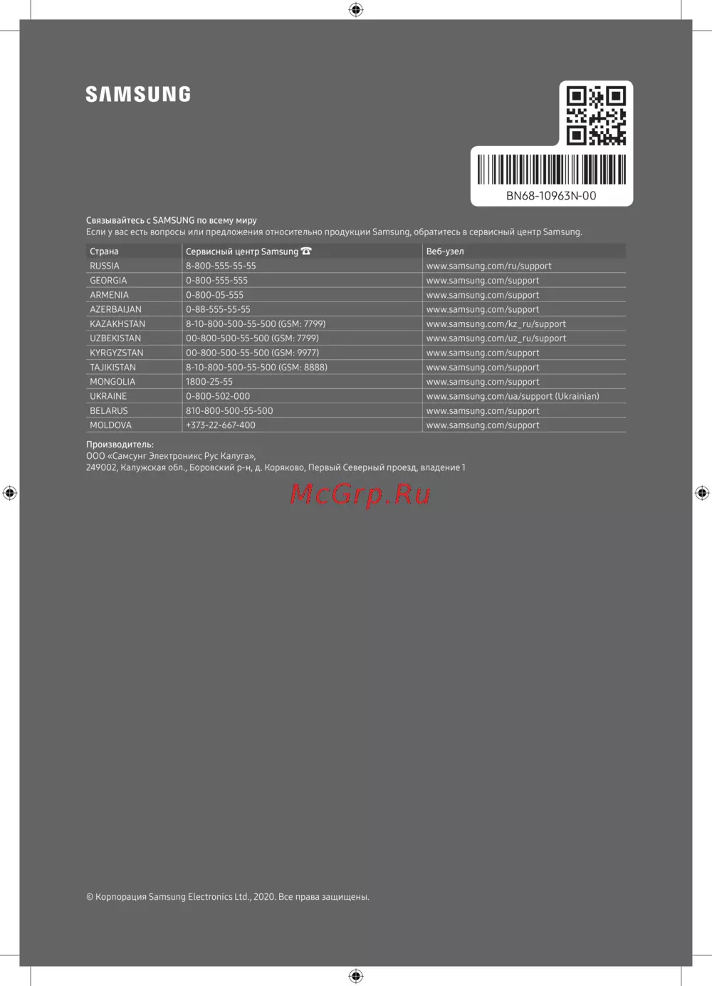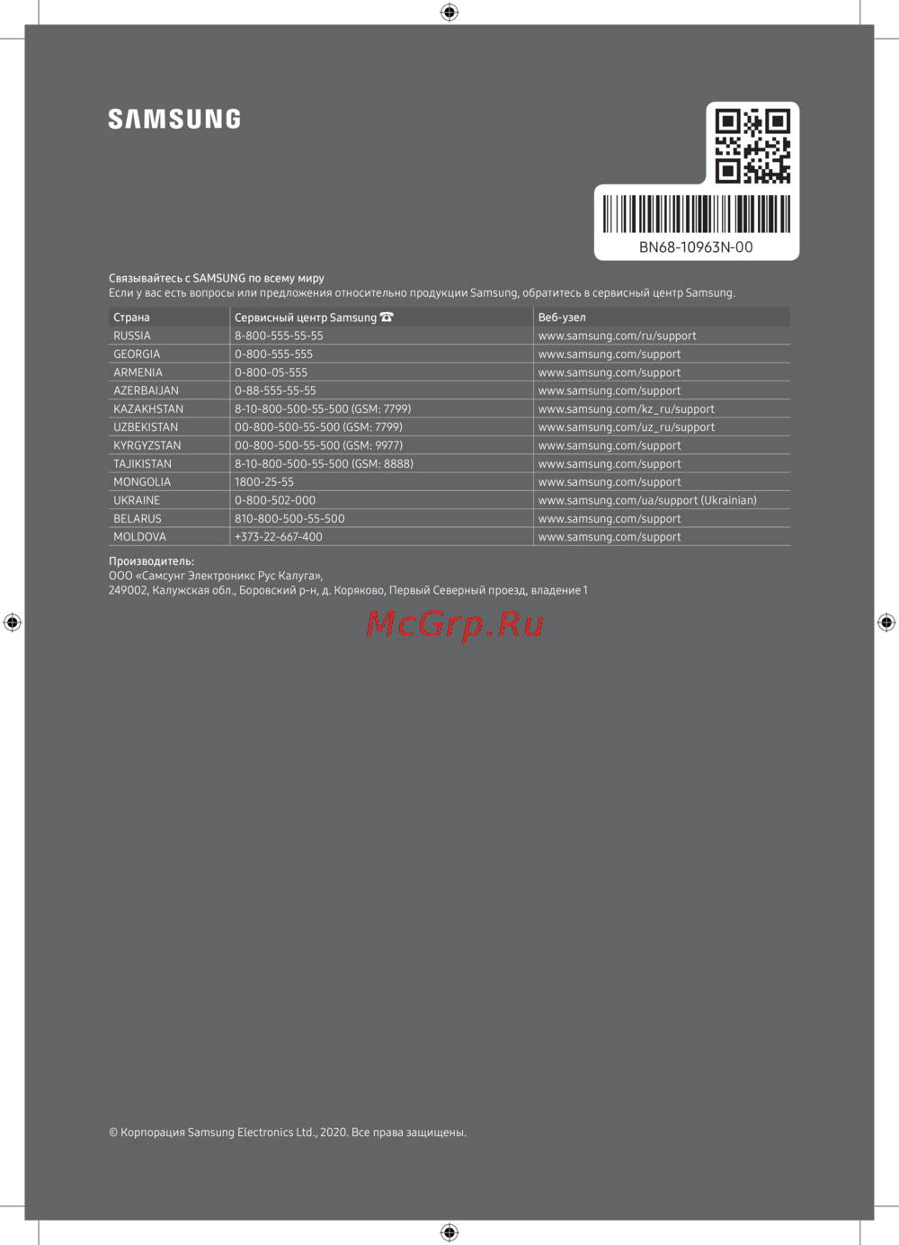 RUSSIA 8-800-555-55-55 www.samsung.com/ru/support
