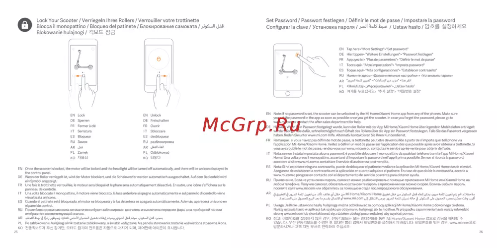 - Lock your scooter verriegeln ihres rollers verrouiller votre trotinete blocca il monopatino bloqueo del patinete blokowanie hulajnogi 킥보드 잠금 блокирование самоката set password passwort festlegen définir le mot de passe impostare la password configurar la clave ustaw hasło 암호를 설정하세요 установка пароля p.14