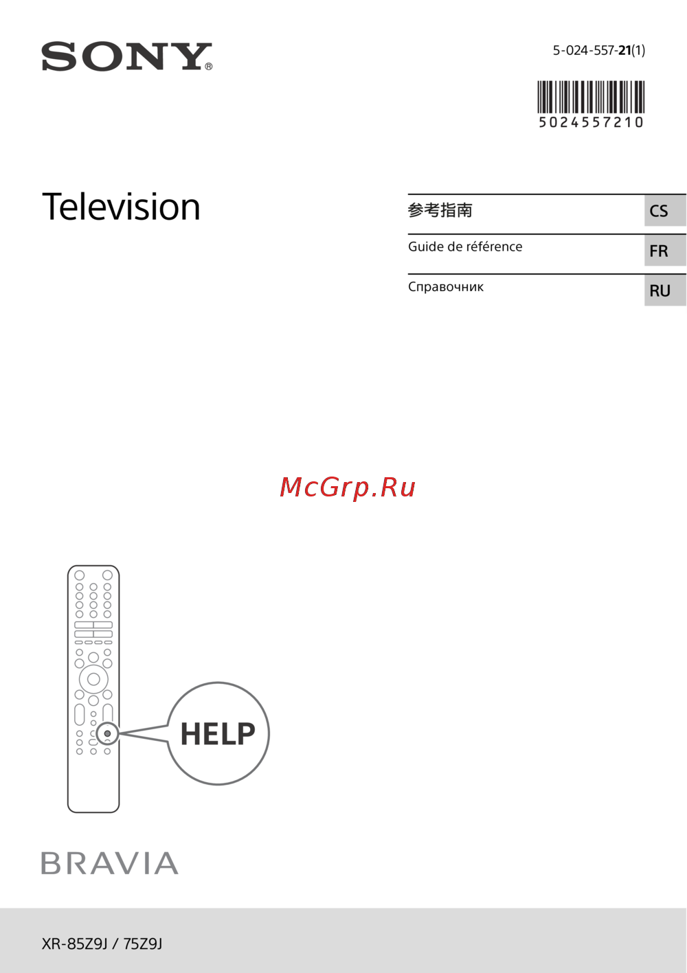Sony XR85Z9J Инструкция по эксплуатации онлайн