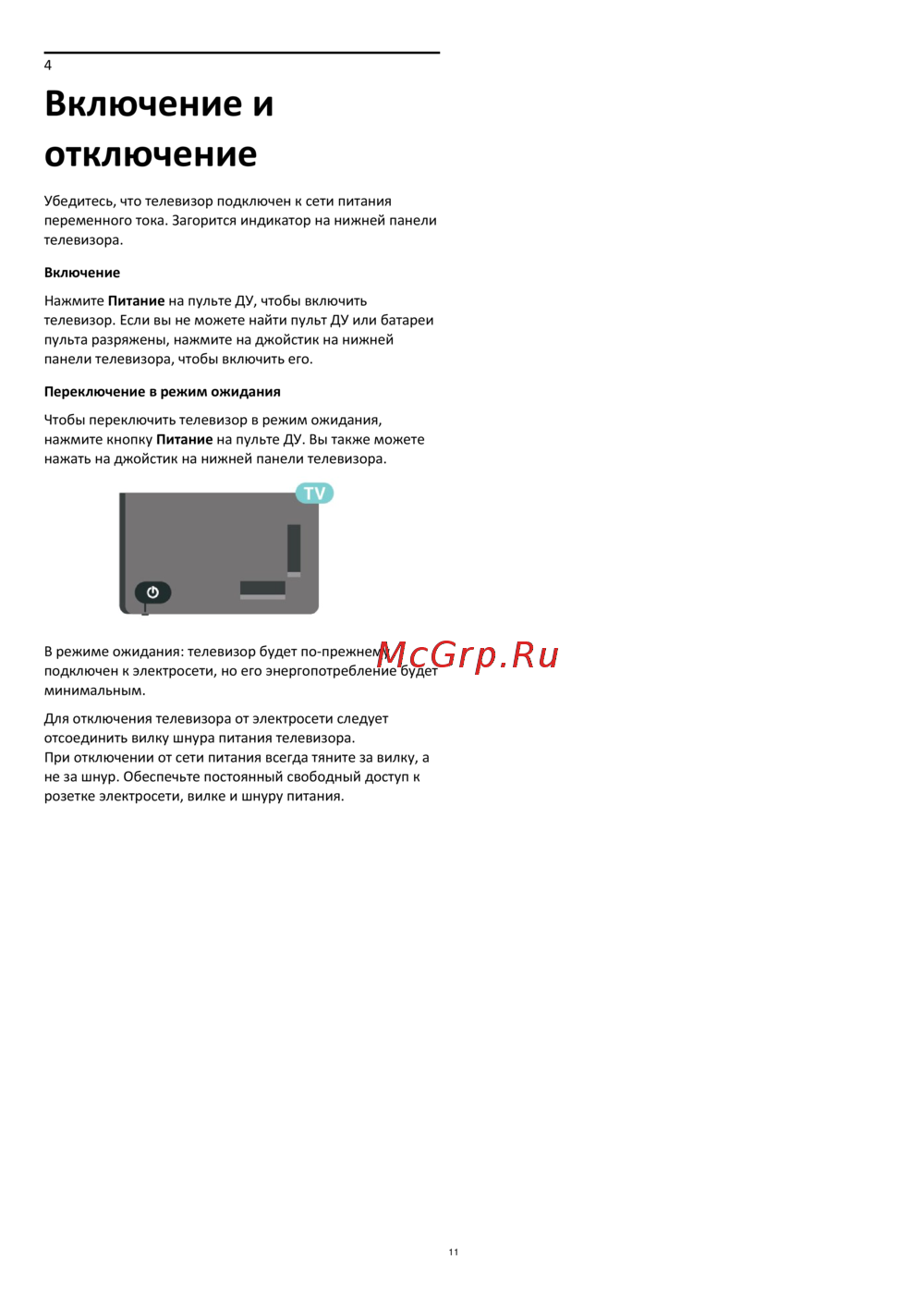 Philips 43PUS7406/60 [11/60] Включение и отключение
