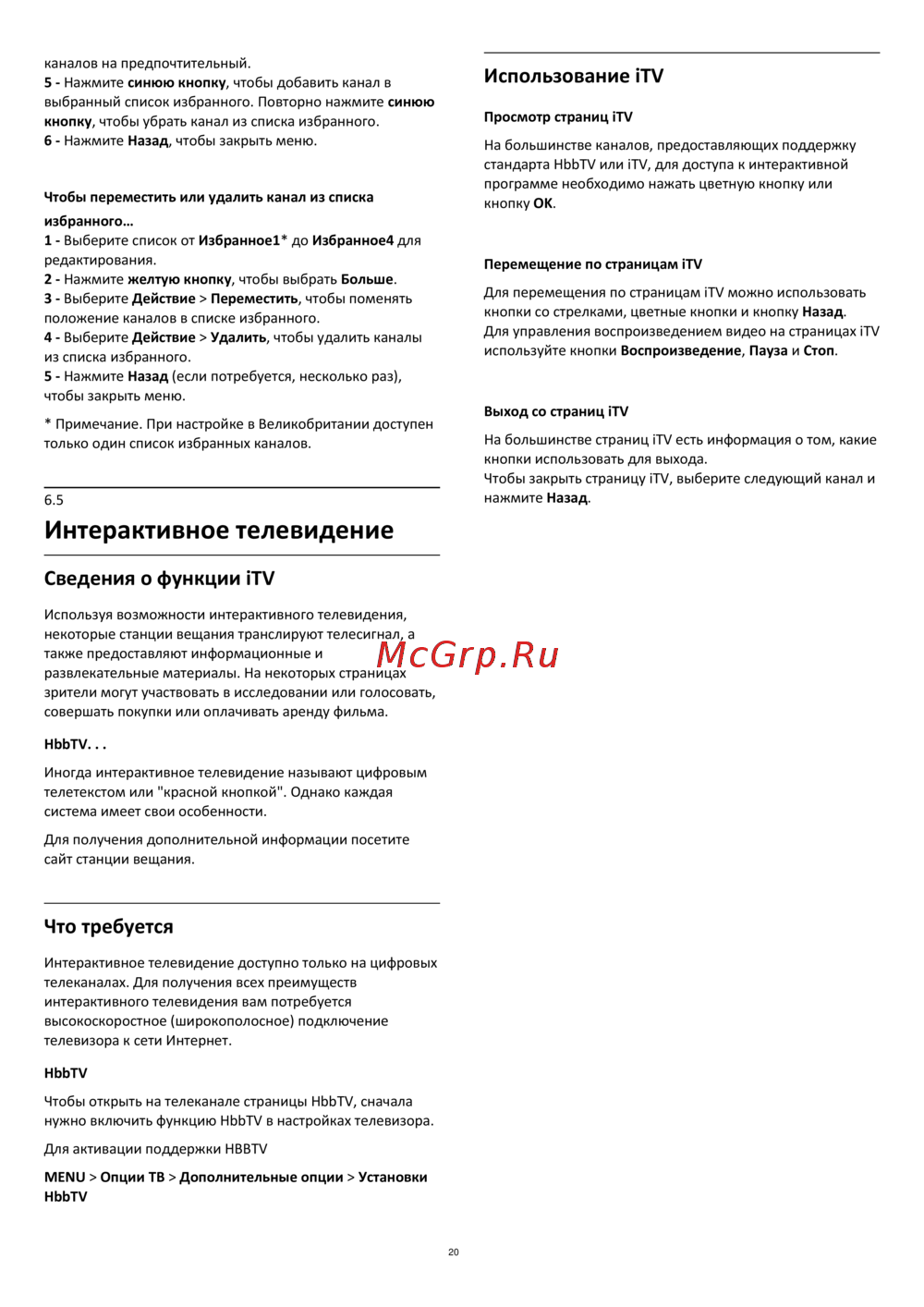 стандарта HbbTV или iTV, для доступа к интерактивной