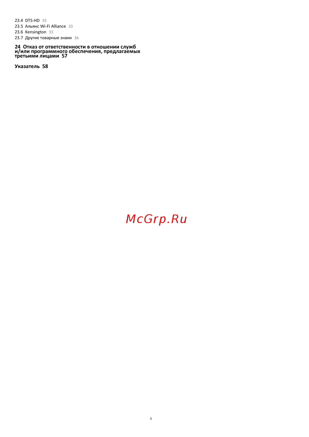 - Отказ от ответственности в отношении служб и или программного обеспечения предлагаемых третьими лицами p.57