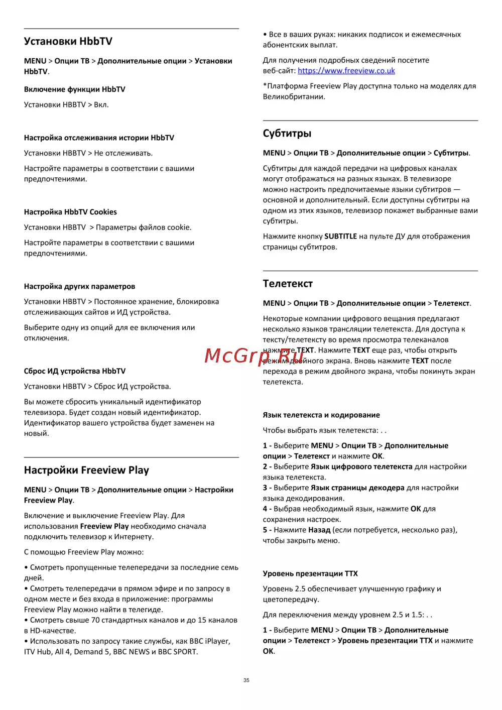 Узнайте, как настроить HbbTV и Freeview Play на вашем телевизоре. Настройте параметры, включая субтитры и телетекст, для комфортного просмотра.