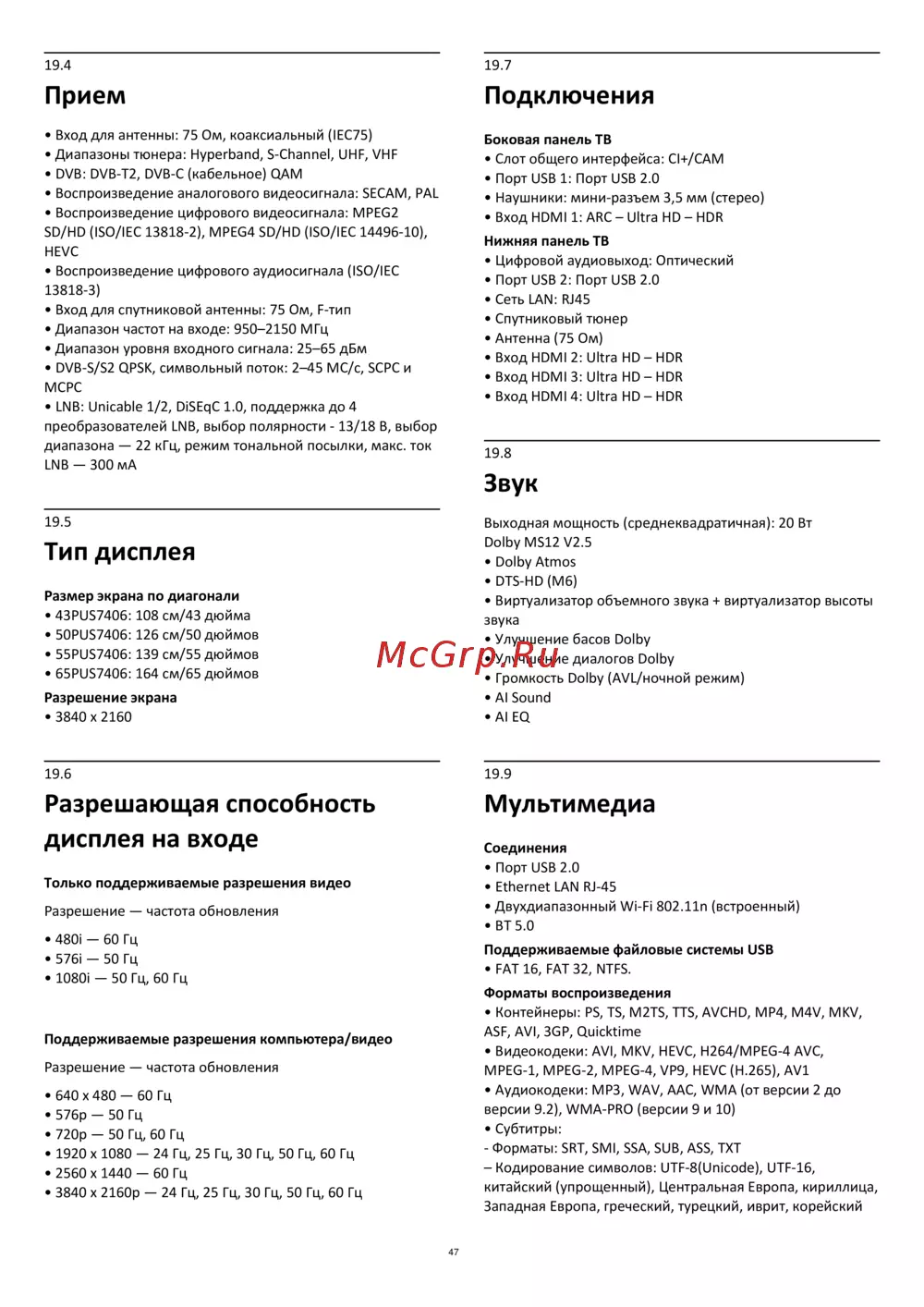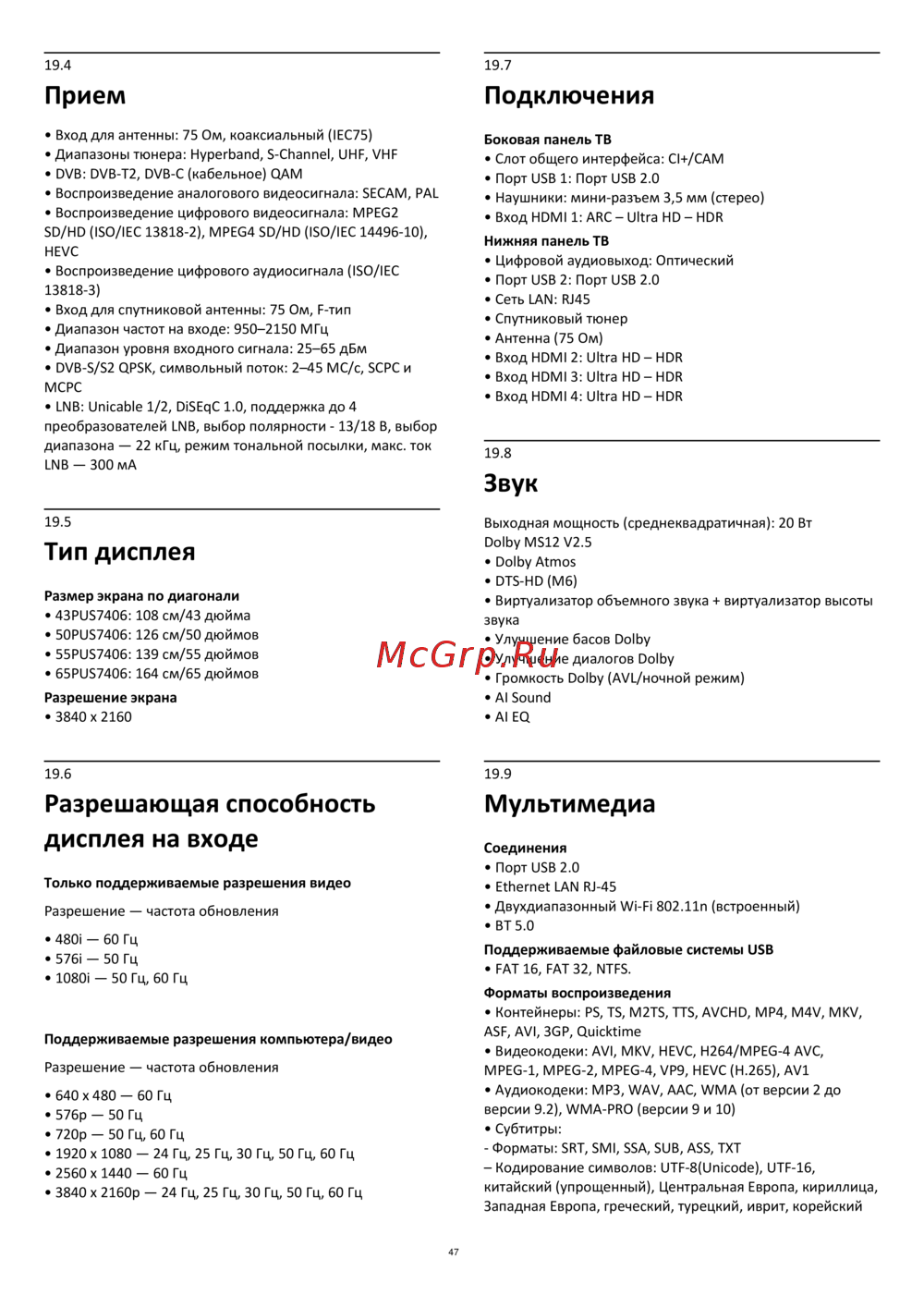 ![Philips 43PUS7406/60 [47/60] Разрешающая способность дисплея на входе](/views2/1854536/page47/bg2f.png)