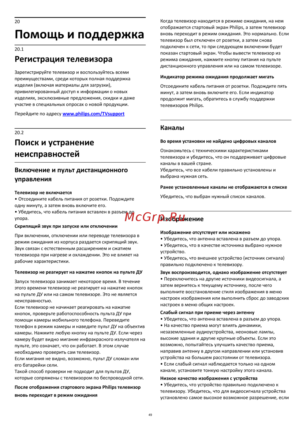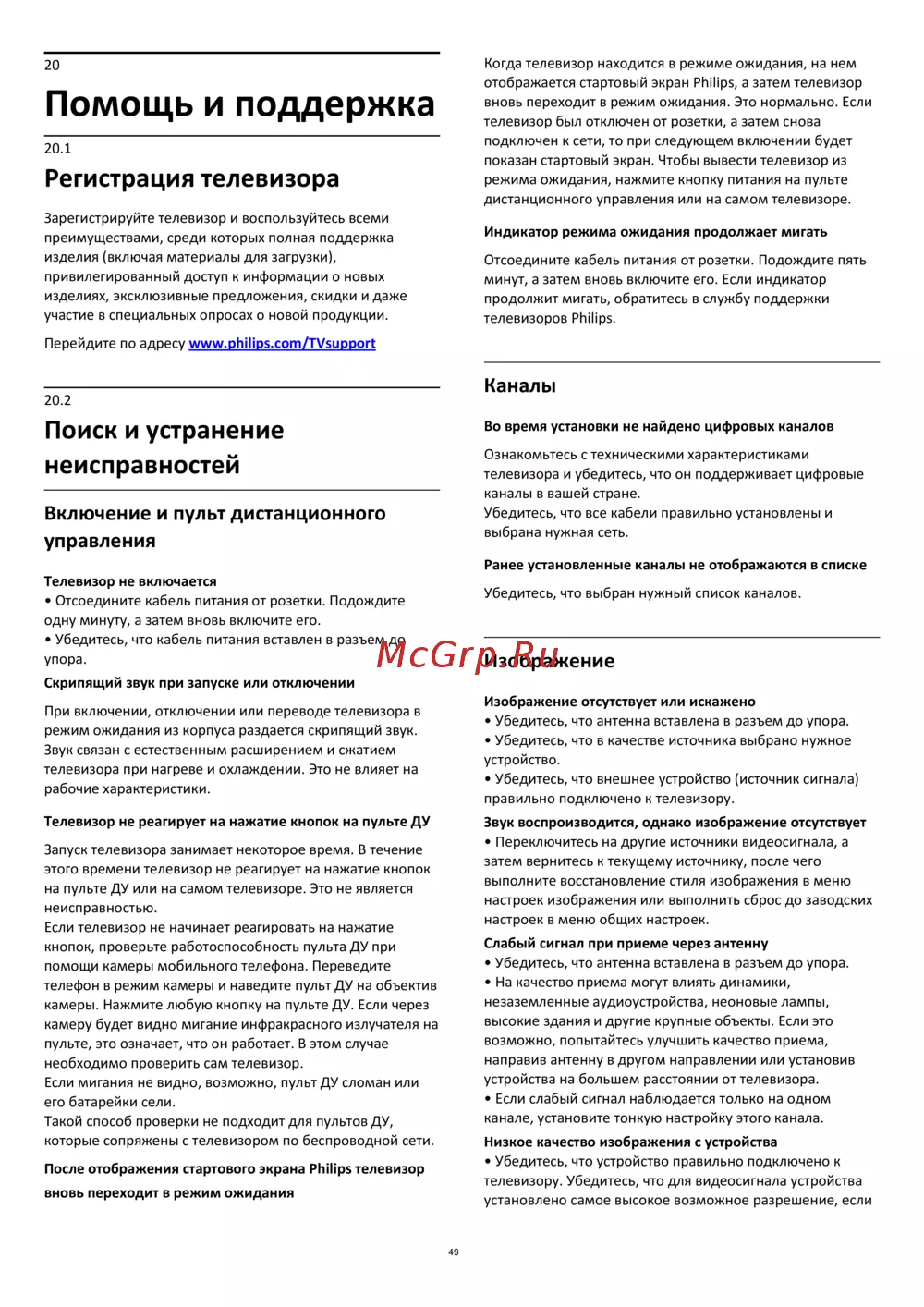 Philips 43PUS7406/60 [49/60] Поиск и устранение неисправностей