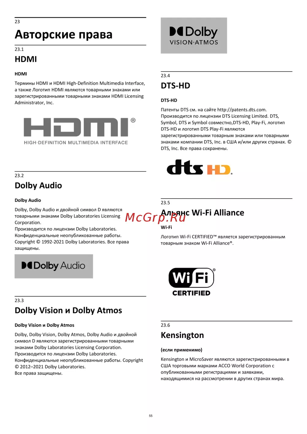 знаками Dolby Laboratories Licensing Corporation.