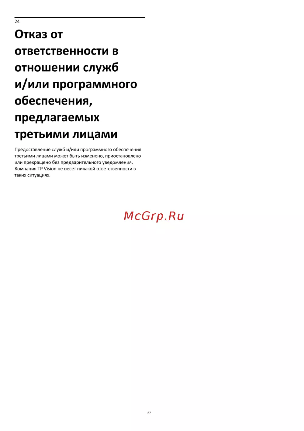 Компания TP Vision не несет никакой ответственности в