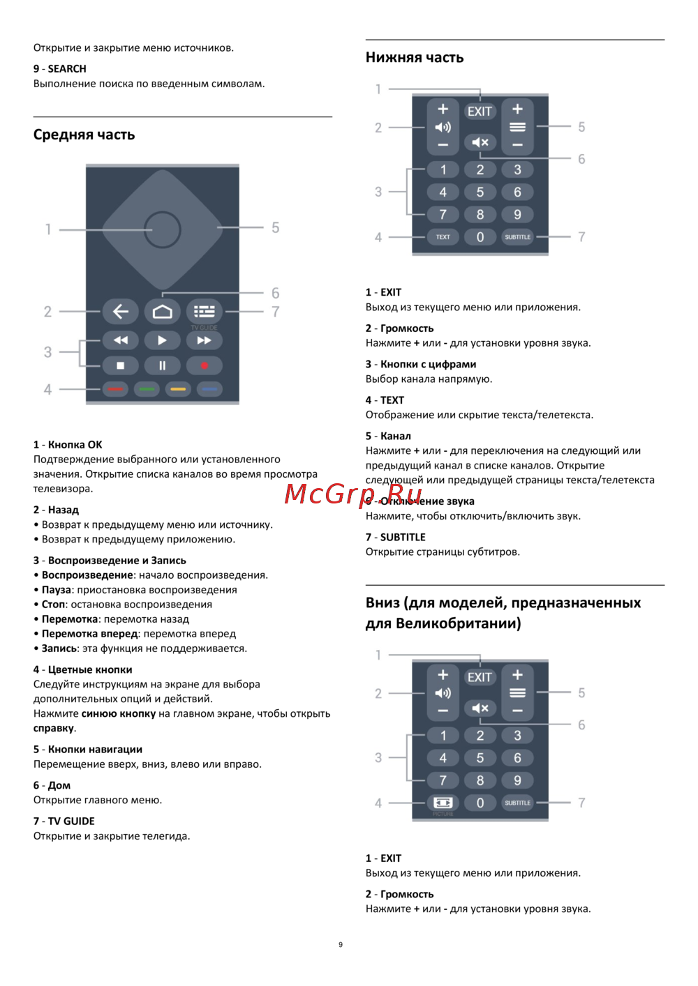 - Вниз для моделей предназначенных для великобритании p.9