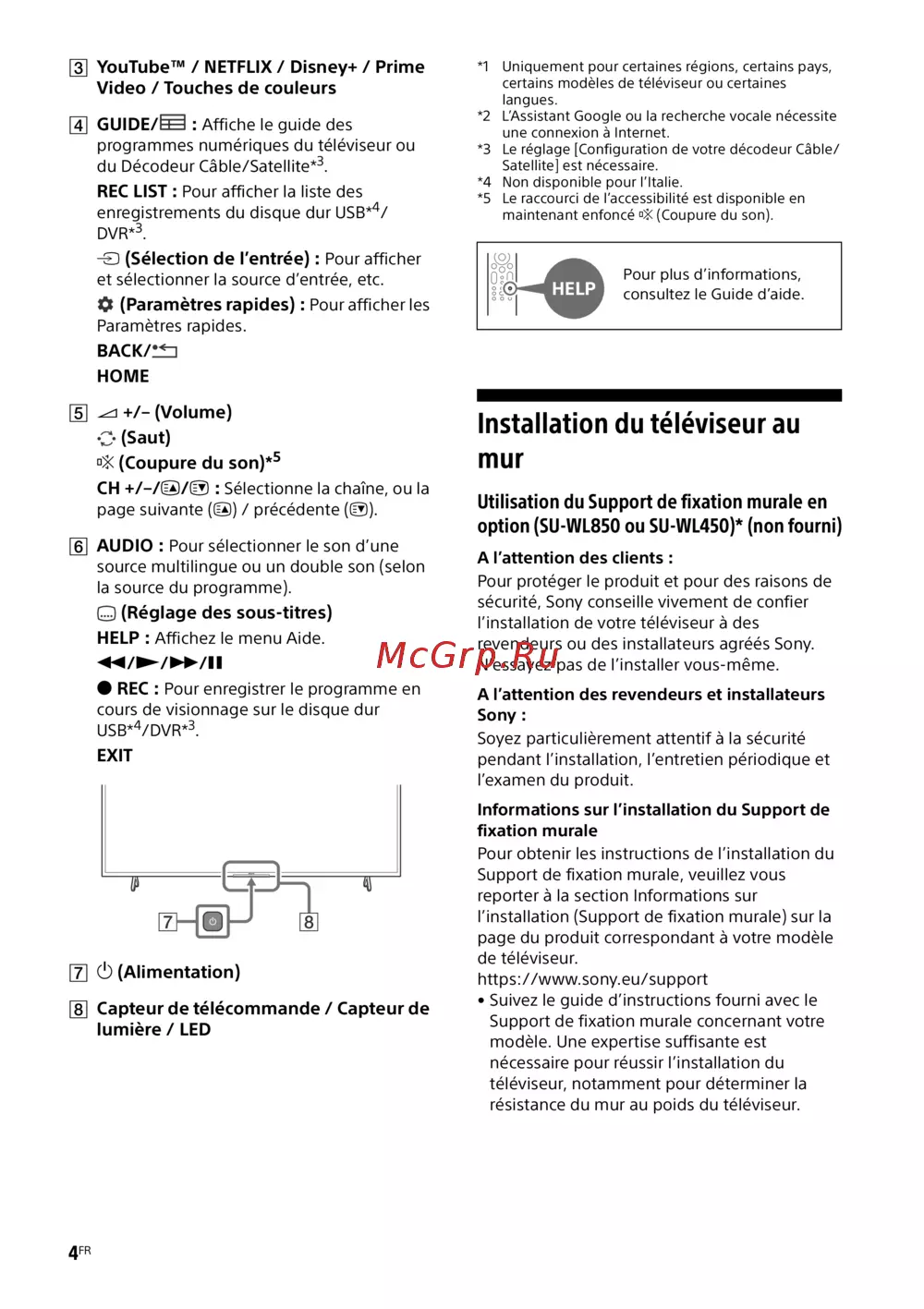 Installation du téléviseur au