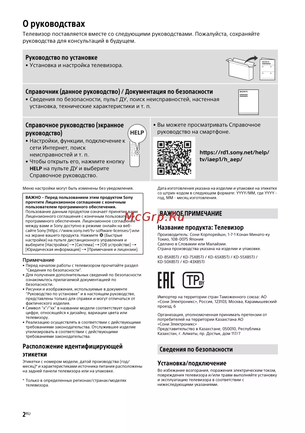 ![Sony KD85X85TJ [18/40] Важное примечание](/views2/1854377/page18/bg12.png)
