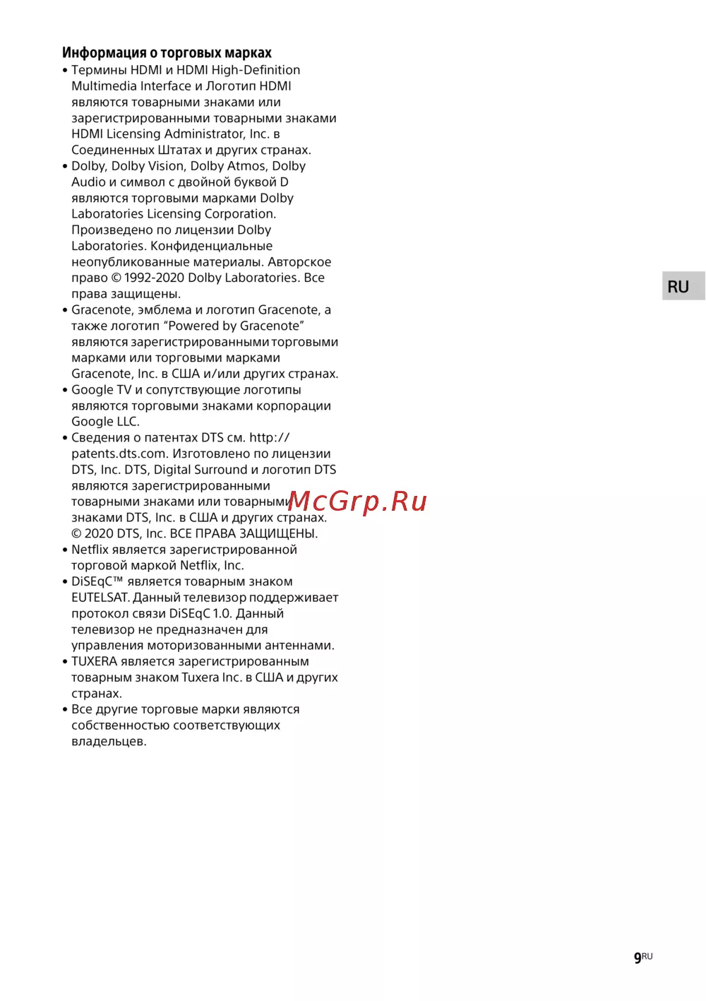 © 2020 DTS, Inc. ВСЕ ПРАВА ЗАЩИЩЕНЫ.