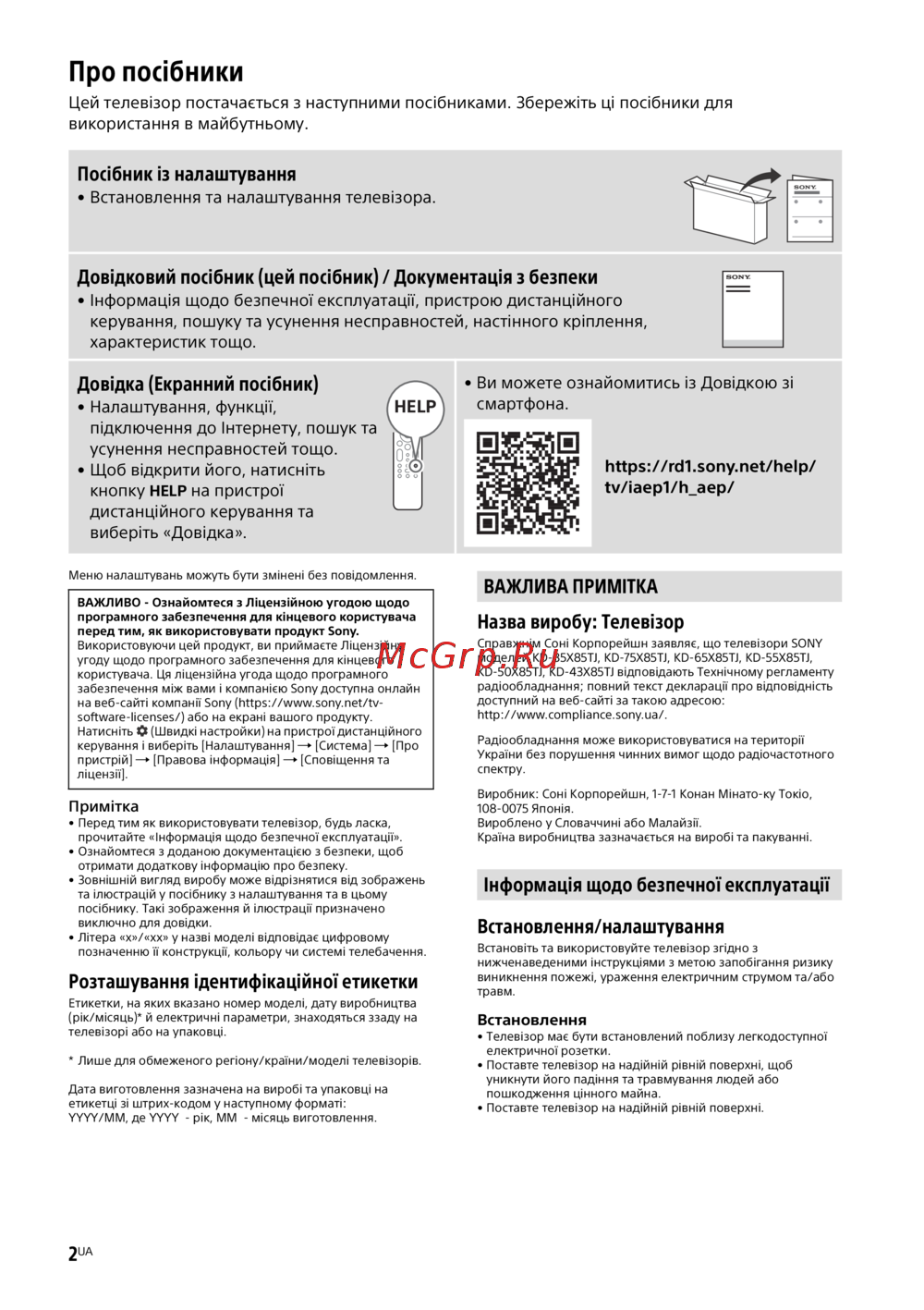 моделей KD-85X85TJ, KD-75X85TJ, KD-65X85TJ, KD-55X85TJ,