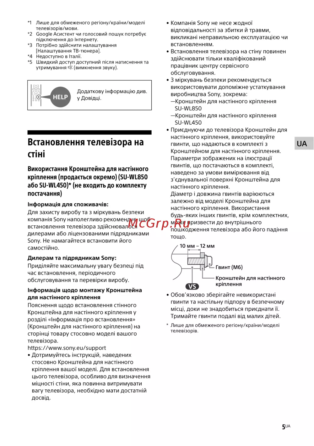 - Використання kронштейна для настінного кріплення продається окремо su wl850 або su wl450 не входить до комплекту постачання p.29