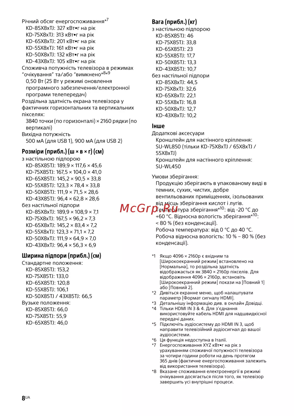 ![Sony KD65X85TJ [32/40] Ширина підпори прибл см](/views2/1854377/page32/bg20.png)