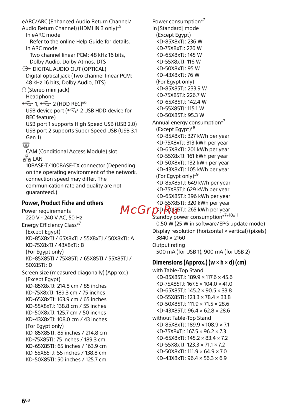 ![Sony KD50X85TJ [6/40] Power product fiche and others](/views2/1854377/page6/bg6.png)